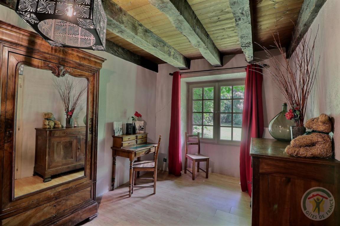 Dieser Gîte verdankt seinen Namen den vielen jahrhundertealten Eichen, die auf dem Grundstück gepflanzt sind. Die nächstgelegenen Eichen sind das Zuhause einer Eichhörnchenfamilie. Wenn Sie die Ruhe des Ortes respektieren, haben Sie möglicherweise die Möglichkeit, einige zu beobachten. Wohnzimmer mit offener Küche, ausgestattet mit Geschirrspüler, Waschmaschine und Mikrowellengrill. In diesem Ferienhaus gibt es keinen Fernseher, um einen Urlaub ohne Verbindung zu verbringen. Für den Komfort Ihrer Kleinen steht auf Anfrage ein Hochstuhl zur Verfügung. Ein großes Hauptschlafzimmer mit einem Himmelbett (140 cm) und einem Bürobereich. Das zweite Schlafzimmer verfügt über 2 Einzelbetten (90 cm). Ein großes, helles Badezimmer mit Badewanne, Waschmaschine, separates WC... Sie haben einen schattigen Privatbereich mit Gartentisch und Grill. Das Anwesen bietet viele Gemeinschaftsräume mit Hühnerstall, Kaninchenstall... Anreise unbedingt von 16.00 bis 20.00 Uhr.