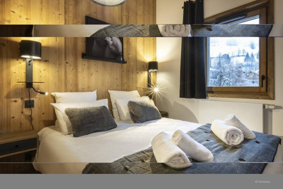 Kapelle von Abondance. Die Dranse d'Abondance fließt nur wenige Meter von der Residenz entfernt und macht diesen Ort zu einem ruhigen und entspannenden Ort. Die Geschäfte und Restaurants des Dorfes sind von der Residenz aus zu Fuß erreichbar. Fläche von ungefähr 45-51 m². Blick berg. Wohnzimmer mit Klappschlafcouch (140x200). Schlafzimmer mit Doppelbett (160x200). offener Schlafbereich mit 2 Stockbetten (80x200). Kochnische mit Raclettegerät, Wasserkocher, Kaffeemaschine, Backofen, Toaster, Geschirrspülmaschine, Mikrowellenherd, 2 Glaskeramikkochfelder, Kühlschrank. Badezimmer mit Handtuchtrockner. WC. Balkon ODER Terrasse. Die oberen Betten sind nicht für Kinder unter 6 Jahren geeignet.