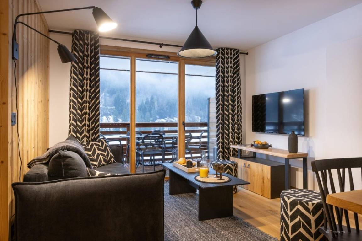 Kapelle von Abondance. Die Dranse d'Abondance fließt nur wenige Meter von der Residenz entfernt und macht diesen Ort zu einem ruhigen und entspannenden Ort. Die Geschäfte und Restaurants des Dorfes sind von der Residenz aus zu Fuß erreichbar. Fläche von ungefähr 65 m². Orientierung : Süd. Blick berg. Wohnzimmer mit Klappschlafcouch (140x200). 2 Schlafzimmer mit Doppelbett (160x200). Schlafzimmer mit 2 Einzelbetten (80x200). Kochnische mit Raclettegerät, Wasserkocher, Kaffeemaschine, Backofen, Toaster, Geschirrspülmaschine, Mikrowellenherd, 2 Glaskeramikkochfelder, Kühlschrank. Badezimmer mit Handtuchtrockner. 2 WCs. Badezimmer. Balkon.