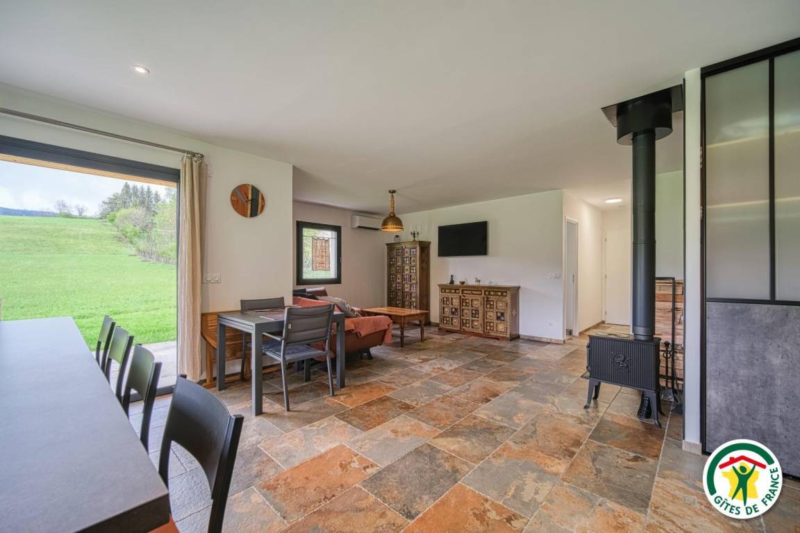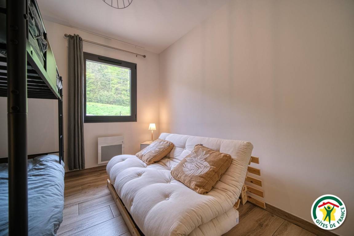 „Gîte neuf, très agréable et très confortable. Très propre et bien équipé. Literie impeccable, salle de bain et pièce de vie spacieuses. Les draps et serviettes sont fournies, ce qui est un avantage quand on vient en vacances. Bien adapté pour une famille de 4 personnes. Gite bien situé à la sortie du village, à proximité à pied (10/15 mn de marche) des commerces. Malgré la proximité du village et de la route, il est très calme, donnant sur un grand champ avec les montagnes au loin, idéal pour observer les étoiles filantes et voie lactée du mois d’août.“