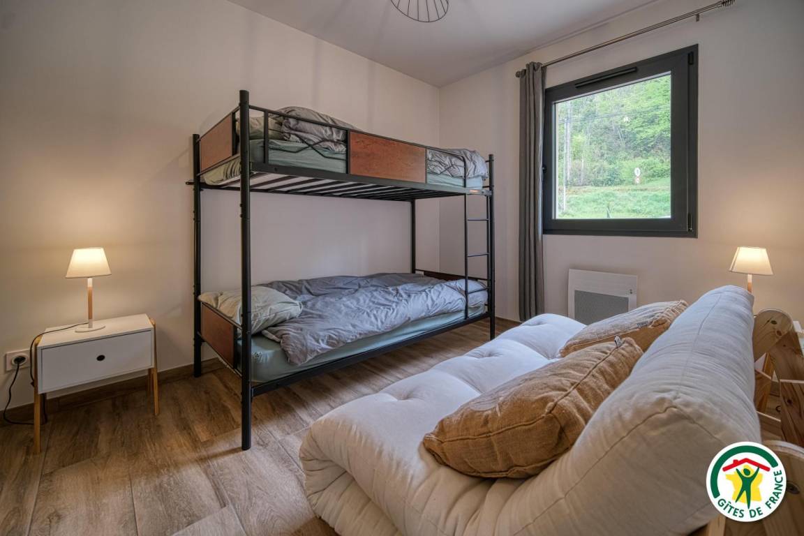 „Etat impeccable poyr ce gîte tout neuf. Très pratique et bien équipé, couchage de qualité. Les grandes baies vitrées offrent une belle vue. Petits détails appreciables, la mise à disposition de thé café, huile, vinaigre.“