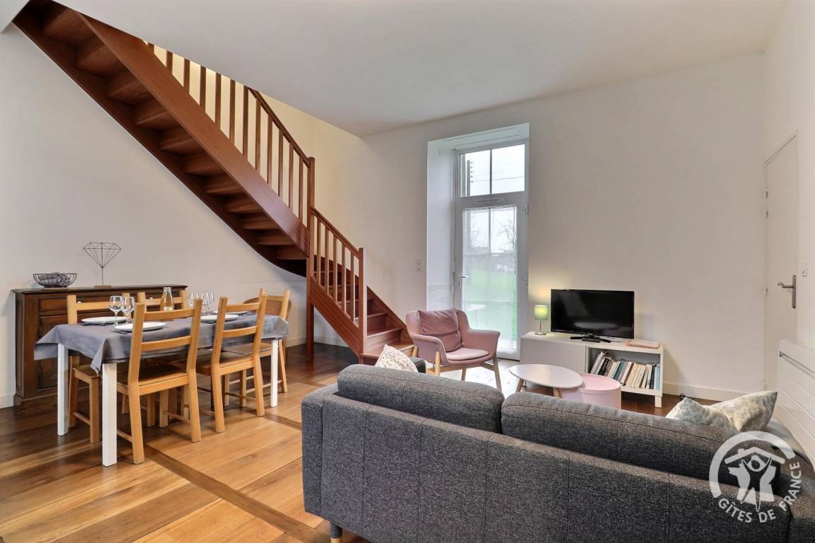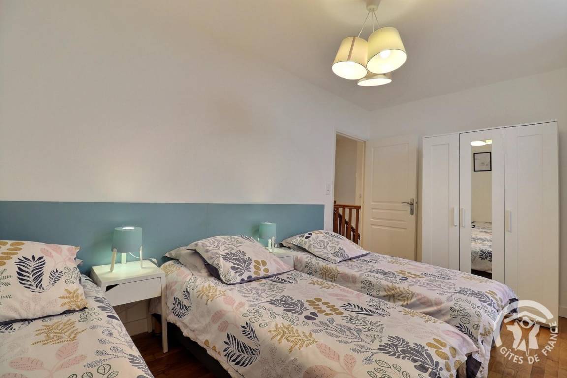 Im Erdgeschoss: Ein Eingang öffnet sich zum Wohnzimmer mit Küche und Wohnzimmer. Obergeschoss: ein Schlafzimmer mit einem Bett 160 x 200, ein Schlafzimmer mit drei Betten 80 (davon 2 Betten, die in ein Doppelbett umgewandelt werden können), ein Duschbad, separates WC.