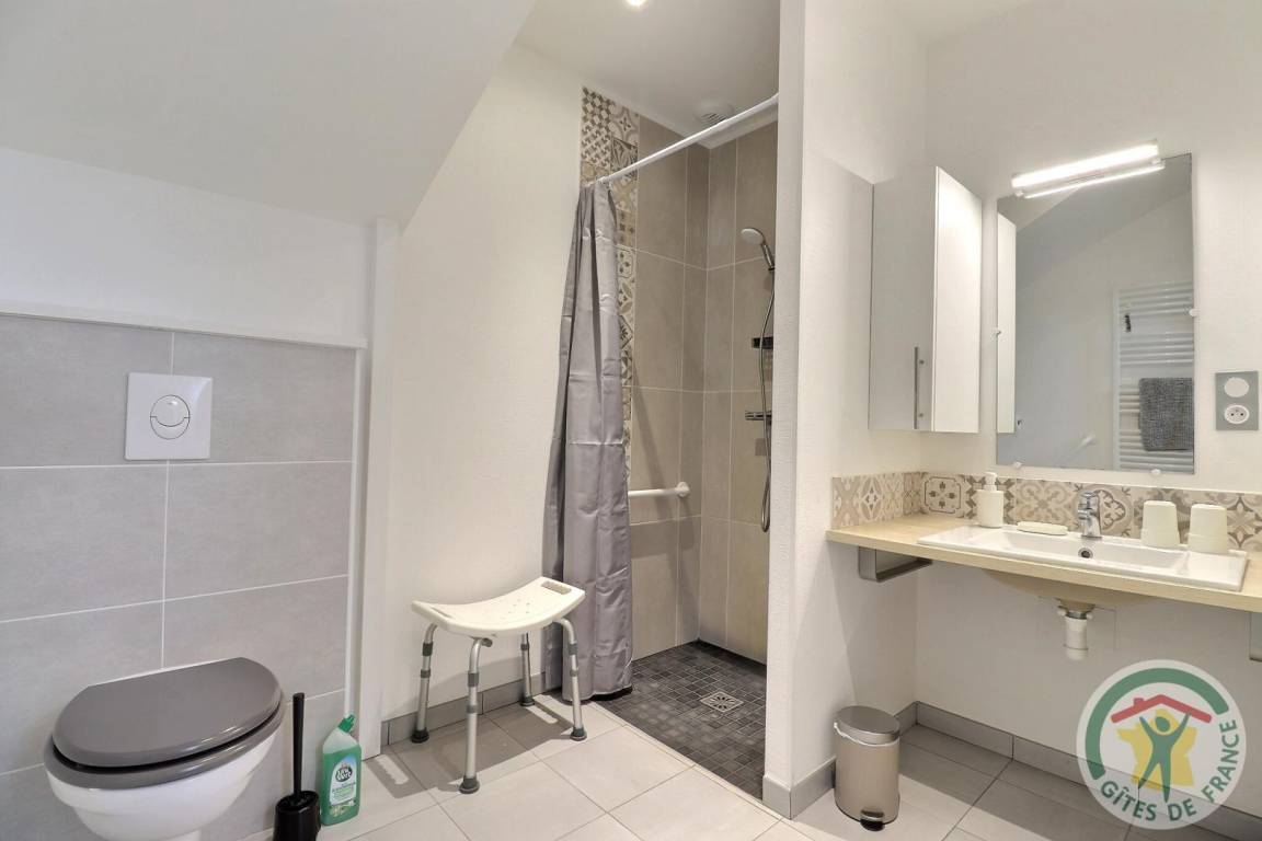 „Gîte très bien adapté aux personnes à mobilité réduite. Propriétaires proches, accueillants et habitués aux accueils PMR. Jardin agréable. Proche du bourg et des commerces.“