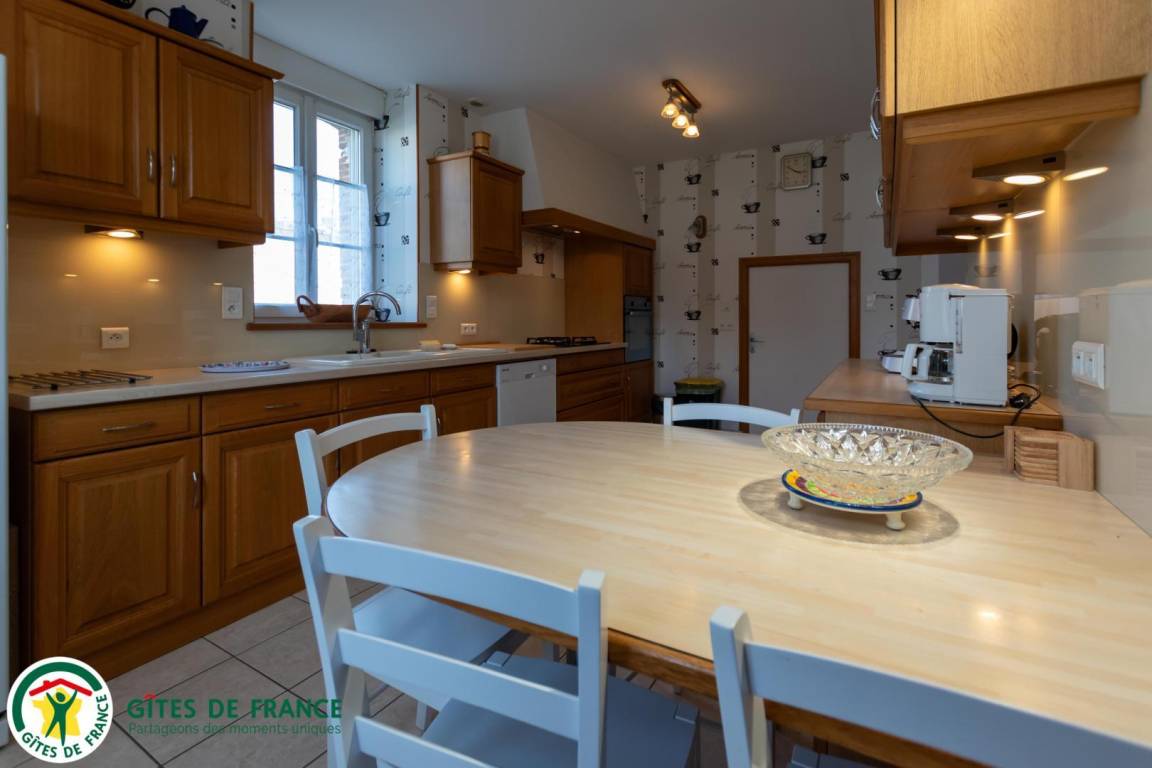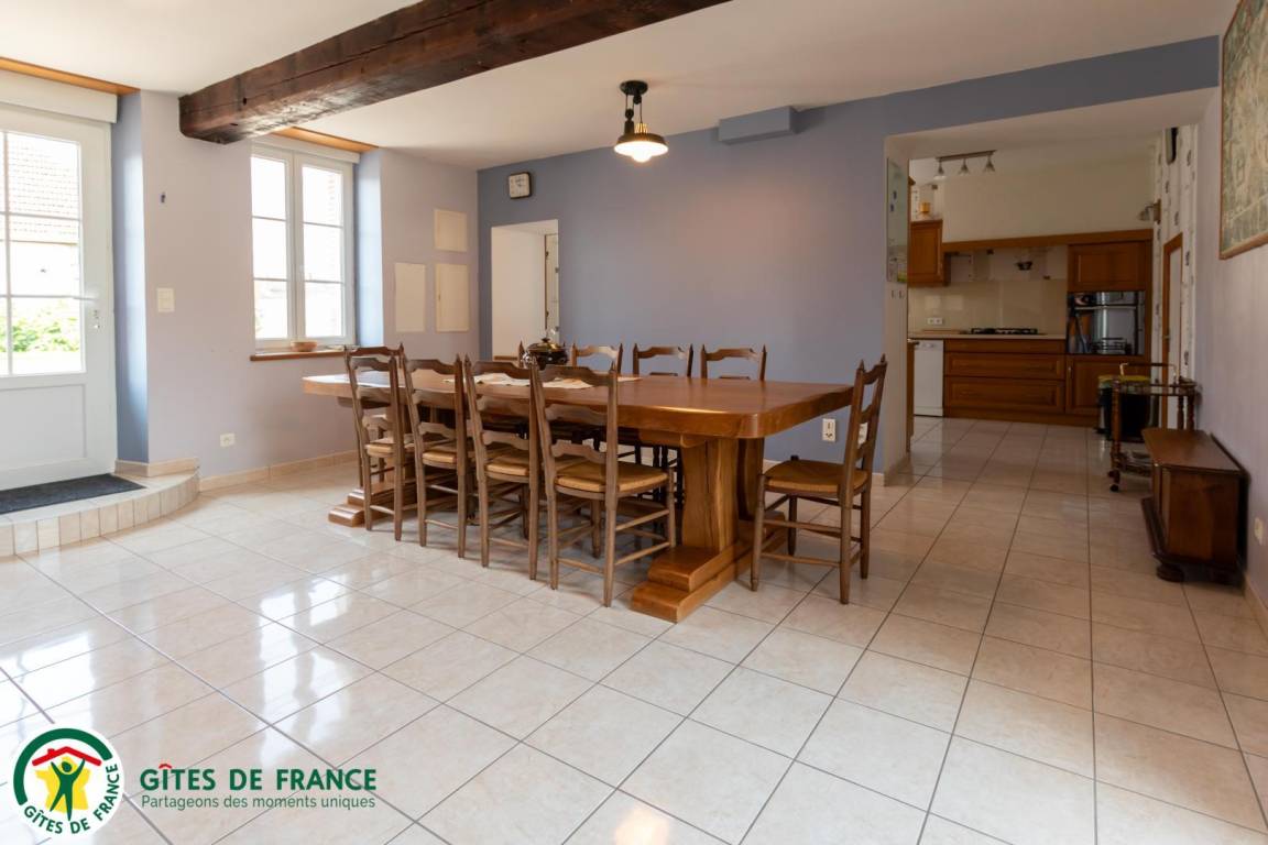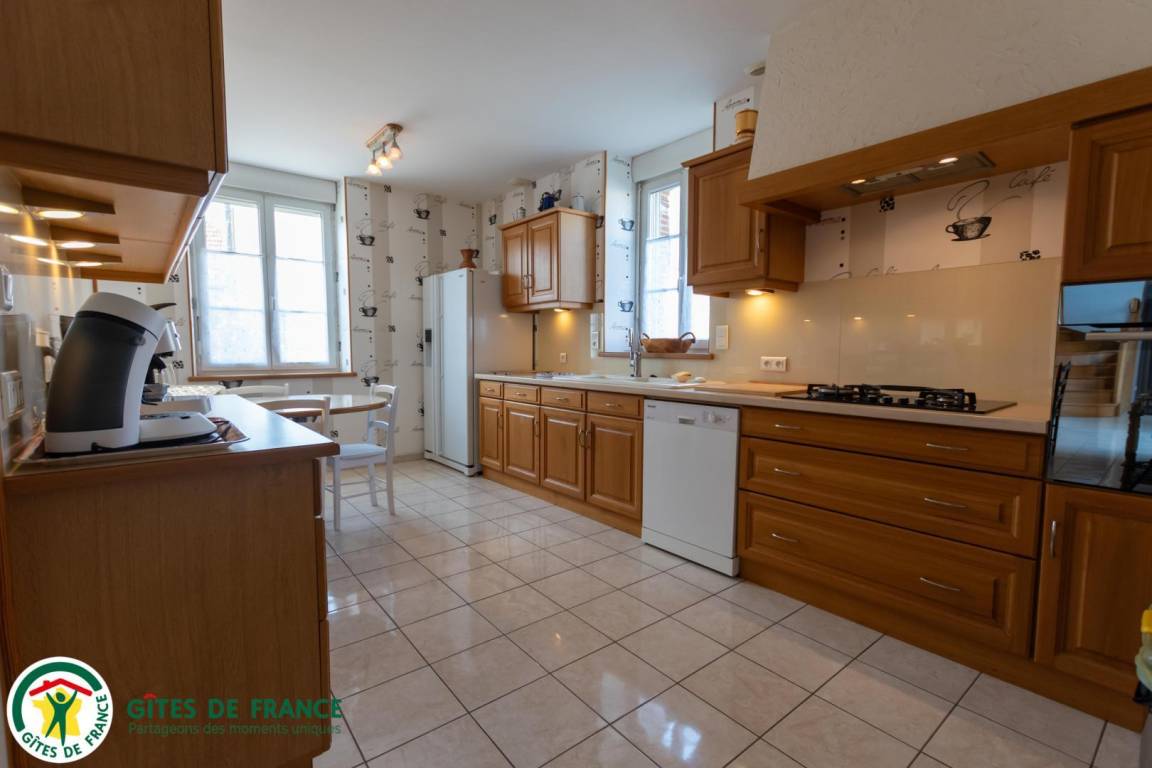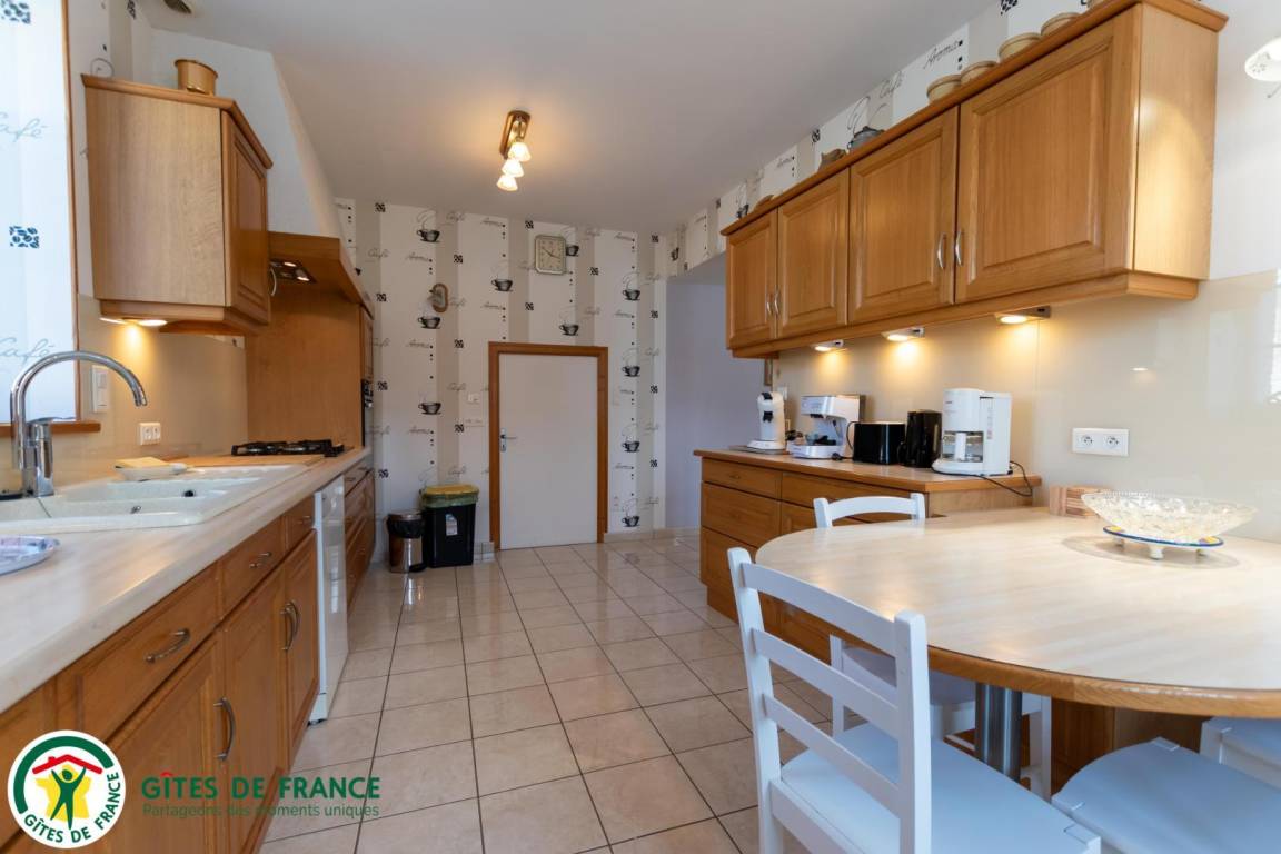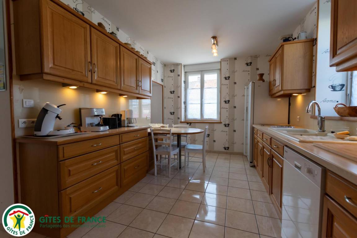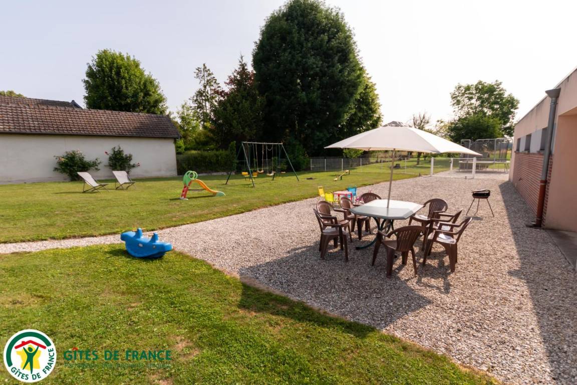 „Grand gite bien équipé avec tout ce qu'il est nécessaire pour cuisiner. Jeux pour enfants de tous âges: Du jardin clos avec balançoire pour les plus petits à la table de ping pong pour les plus grands. Au calme, et bien isolé. Cours pour garer les voitures.“