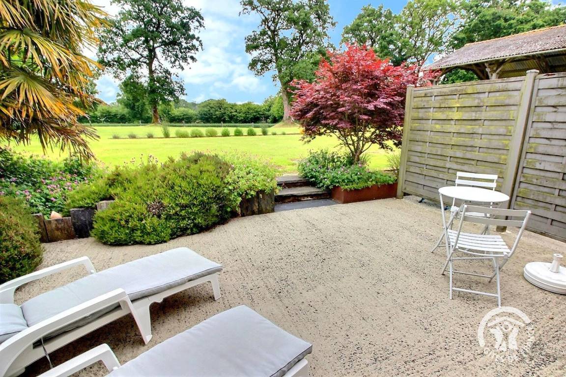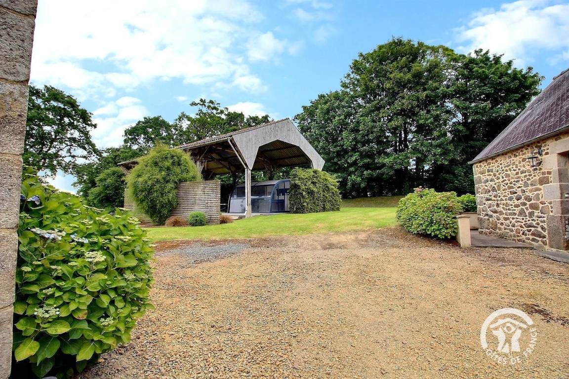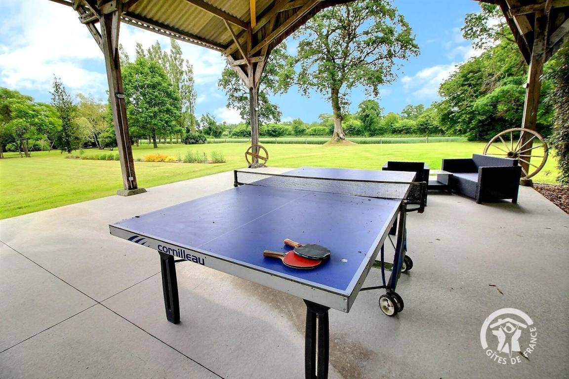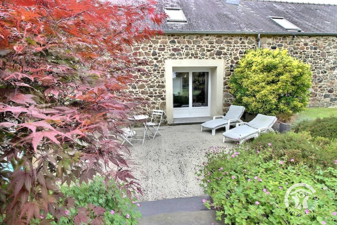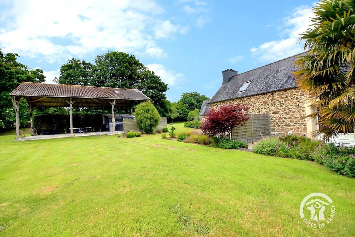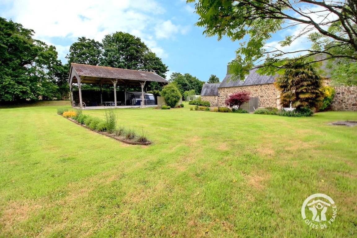 Entspannungsbereich im Freien von 100 m², der den beiden Gîtes gemeinsam ist, einschließlich eines überdachten Spas, das den beiden Gîtes gemeinsam ist und das ganze Jahr über verfügbar ist.