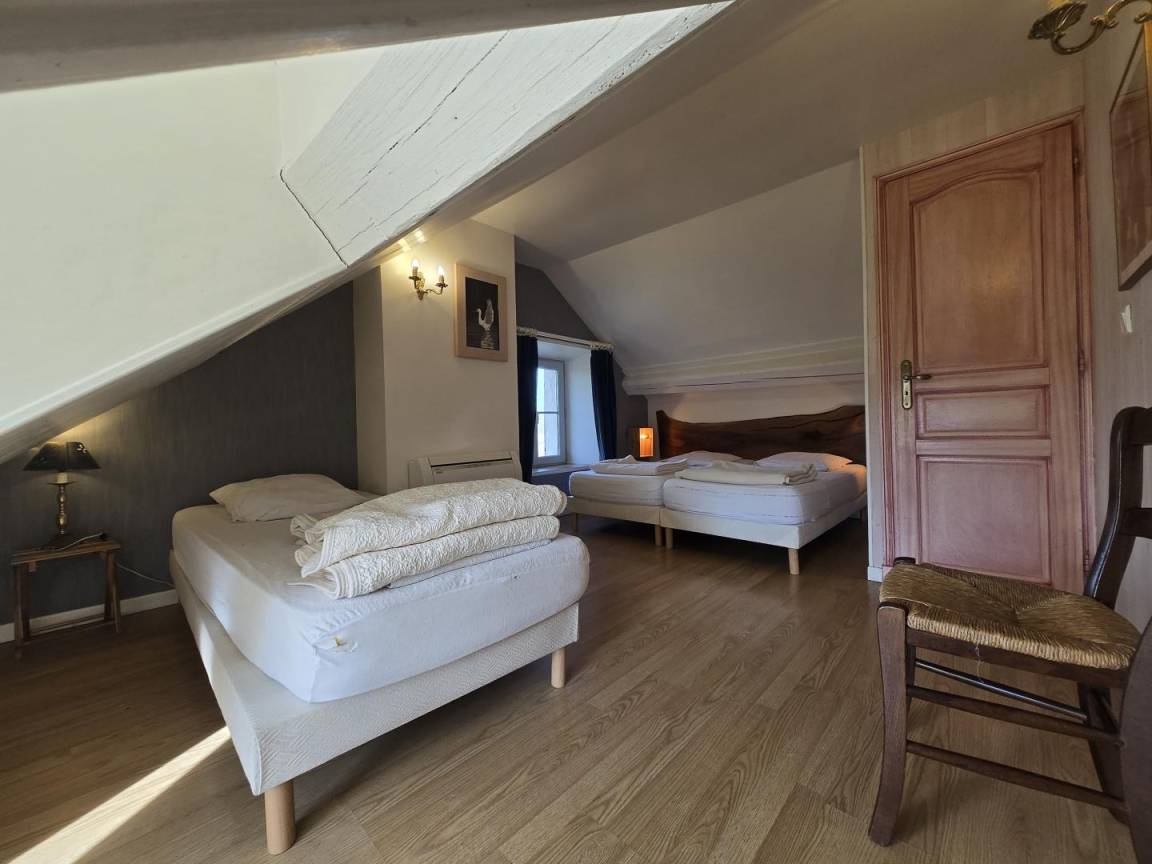 Im ersten Stock: 1 Schlafzimmer mit 3 Einzelbetten (90 x 200), 1 Schlafzimmer mit 2 Einzelbetten (90 x 200). Duschraum mit Waschmaschine. Separates WC.