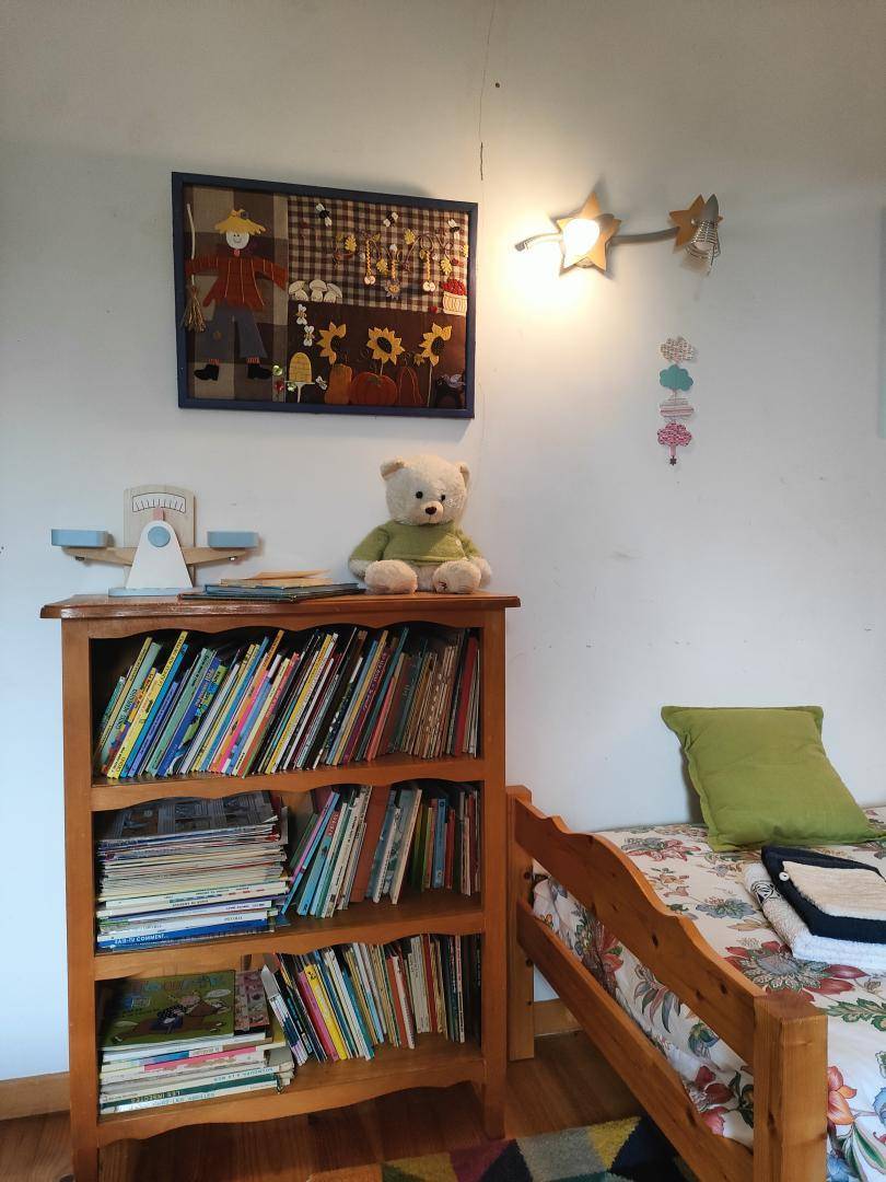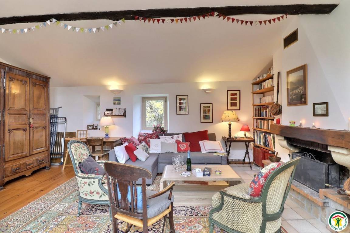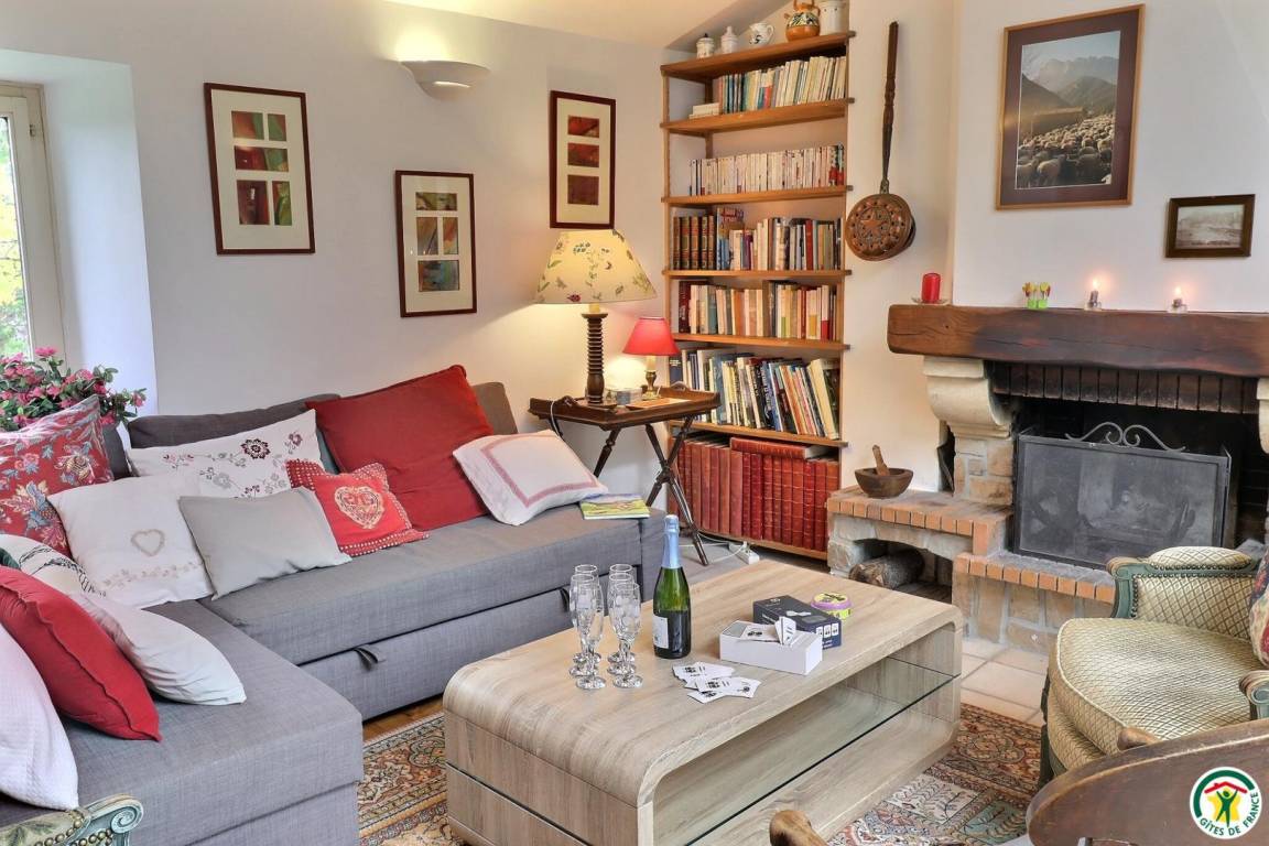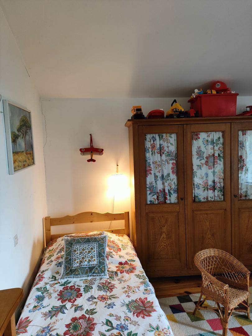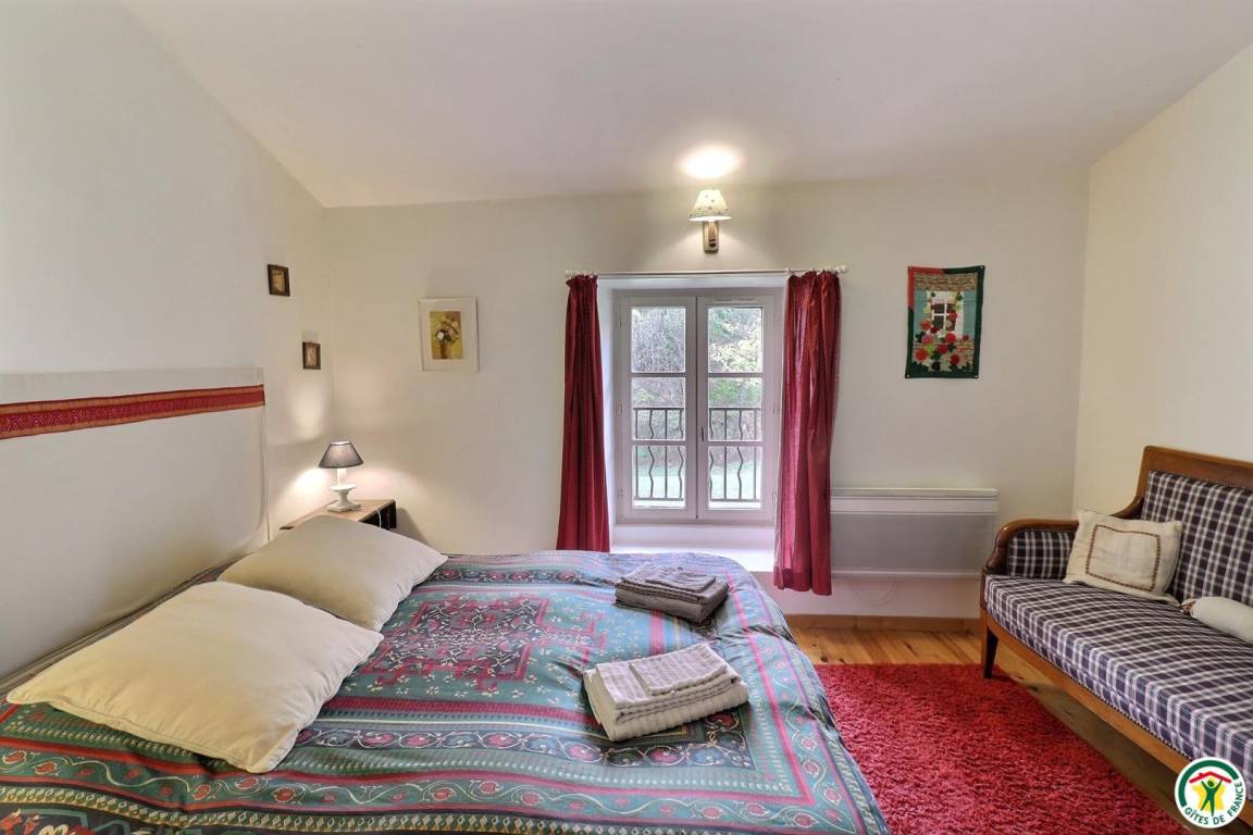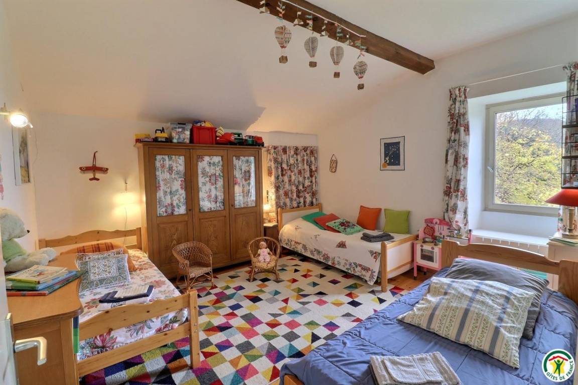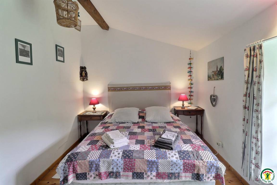 "Obergeschoss (Zugang über eine steile Steintreppe): große Küche mit Holzofen, großes Wohnzimmer mit Schlafsofa und Kamin, 3 Schlafzimmer (1 Bett 160 x 200 cm) (1 Bett 180 x 200 cm oder 2 Betten 90 x 200 cm) (2 Betten 90 x 190 cm), Badezimmer, separates WC. Große, an Wohnzimmer und Küche angrenzende Terrasse mit freier Sicht auf die Bergkette "Les Trois Becs". Eigener Garten und Parkplatz. Innenhof zur gemeinschaftlichen Nutzung beider Ferienunterkünfte. Möglichkeit zur Beherbergung von 5 weiteren Personen. Einzelheiten und Preise erhalten Sie auf Anfrage bei den Vermietern."