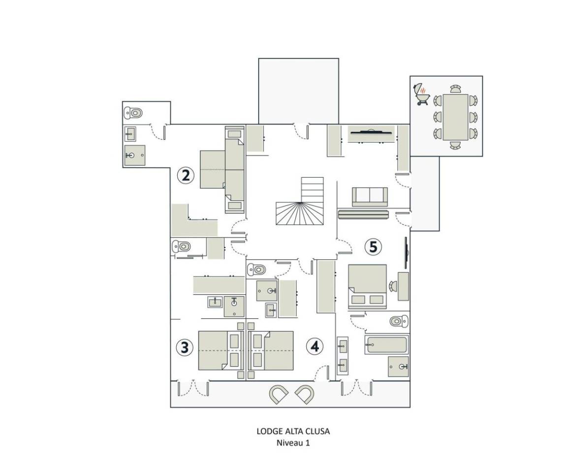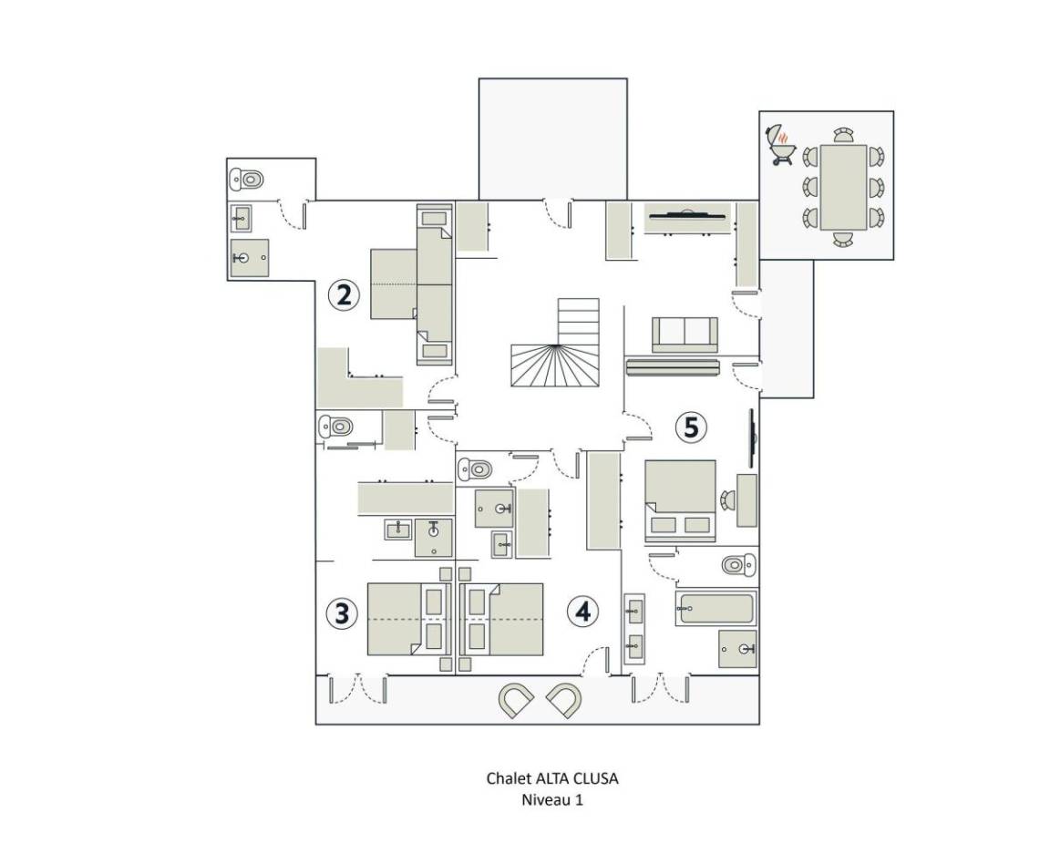 Die Lodge Alta Clusa ist ein außergewöhnliches Chalet in La Clusaz. Tauchen Sie ein in die Eleganz und den Komfort dieses prestigeträchtigen ★★★★★ Chalets auf 1.187 m Höhe im Herzen der Alpen. Mit seiner Südausrichtung und 375 m² auf vier Ebenen bietet dieses geräumige Chalet ideal Platz für bis zu 15 Personen in einer warmen und luxuriösen Atmosphäre. Fläche von ungefähr 375 m². Orientierung : Süd. Blick panorama. Niveau 0 : Wohnzimmer mit TV. 2 Schlafzimmer mit , Doppelbett (180), Waschraum, WC. Schlafzimmer mit , , Doppelbett (180), Waschraum, WC. Schlafzimmer mit Doppelbett (180), 2 Einzelbetten, , WC. Garten ab 999.99 m². Waschmaschine. Niveau -1 : Schlafzimmer mit , Doppelbett (180), , WC. Schlafzimmer mit , Doppelbett (180), Waschraum, WC. Entspannungsbereich mit privates Schwimmbecken (nage à contre courant). Niveau 1 : Wohnzimmer mit Baby-foot, Kamin, TV. offene Küche mit Fonduegerät, Raclettegerät, Kaffeemaschine (Nespresso), Gefrierschrank, Backofen, Geschirrspülmaschine, Mikrowellenherd, Induktionsherdplatten, Kühlschrank. separates WC. Terrasse ab 85.00 m² mit Grillrost (en été (charbon)), Liege. Niveau 2 : Schlafzimmer mit Doppelbett (180). Badezimmer mit , Dusche, WC. Waschmaschine, Wäschetrockner.