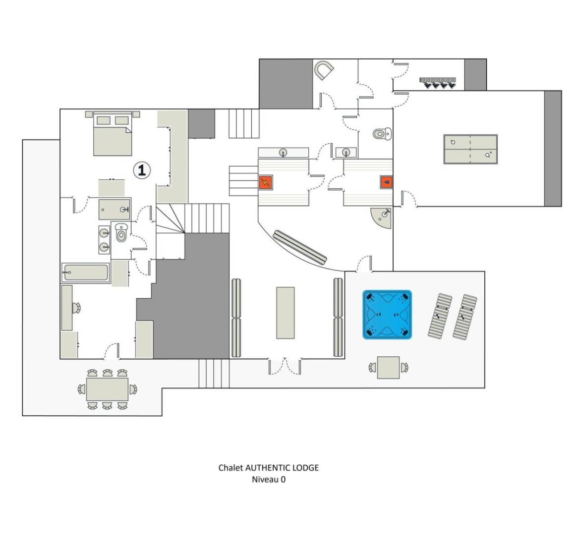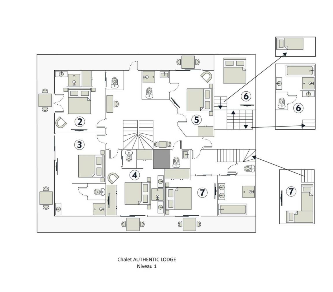 Das Chalet Authentic Lodge Spa befindet sich in idealer Lage in La Clusaz, nur 400 Meter von den Pisten entfernt. Das Chalet wurde mit ★★★★★ bewertet und empfängt Sie in einem repräsentativen Ambiente mit außergewöhnlichen Annehmlichkeiten. Das geräumige, 415 m² große Chalet bietet Platz für 15 Personen und verfügt über einen kompletten Wellnessbereich mit Außen-Spa, Hamam und Sauna sowie ein weitläufiges Privatgrundstück, das eine wahre Oase der Ruhe bietet. Fläche von ungefähr 415 m². Orientierung : Nord. Niveau 0 : Schlafzimmer mit Dusche, Doppelbett (200), , WC. Waschmaschine, Wäschetrockner. Büro mit . Niveau 1 : 2 Schlafzimmer mit Doppelbett (160), Waschraum, WC. 2 Schlafzimmer mit , Doppelbett (160), Waschraum, WC. Schlafzimmer mit Dusche, Doppelbett (160), Einzelbett (90), , WC. Schlafzimmer mit Dusche, Doppelbett (160), 2 Einzelbetten, , WC. separates WC. Terrasse mit Grillrost (l'été), Gartentisch und -stühle, Liege. Niveau 2 : Wohnzimmer mit Kamin, TV. Küche mit Fonduegerät, Raclettegerät, Wasserkocher, Kaffeemaschine (Nespresso et filtre), , Gefrierschrank, Backofen, Toaster, Geschirrspülmaschine, Mikrowellenherd, Induktionsherdplatten, Kühlschrank.