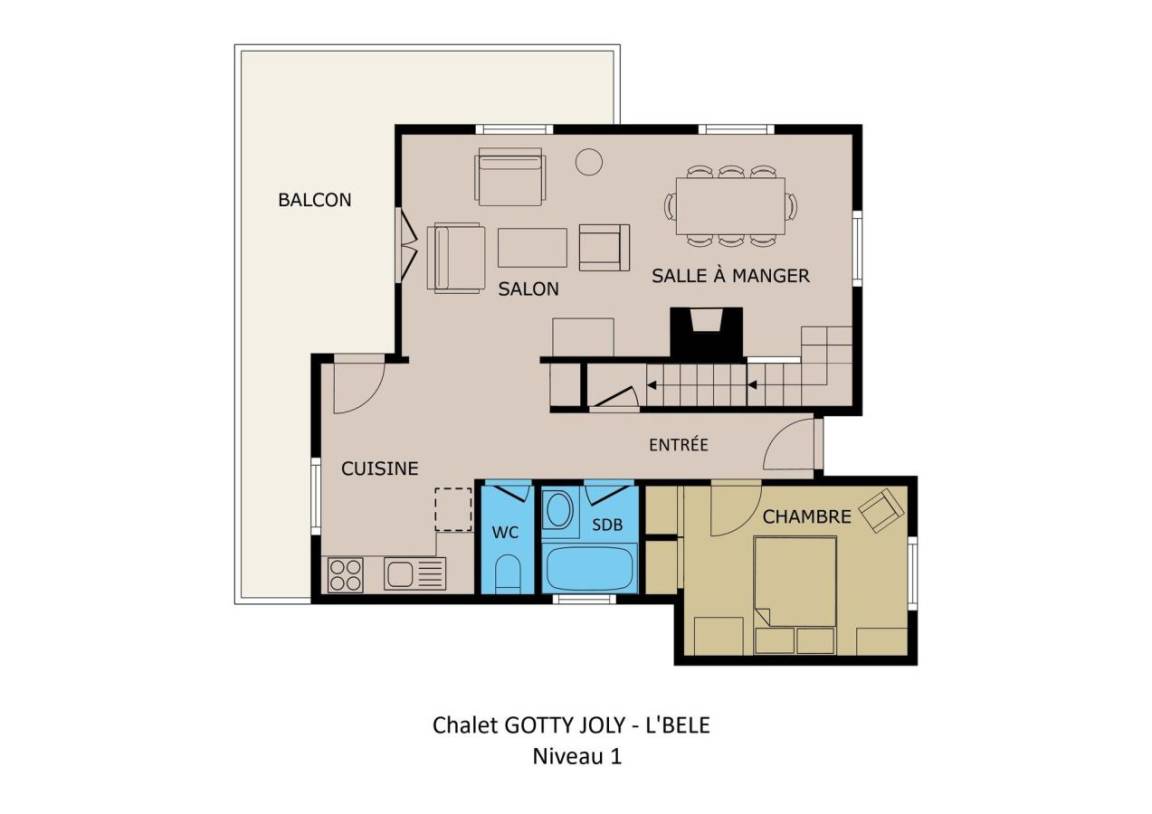 Fläche von ungefähr 122 m². Orientierung : Süd, West. Niveau 0 : Wohnzimmer mit Kamin (décorative). Schlafzimmer mit Doppelbett (140). Schlafzimmer. Küche mit Kaffeemaschine (Nespresso), Backofen, Geschirrspülmaschine, Mikrowellenherd, 2 Glaskeramikkochfelder, Kühl-Gefrier-Kombination (140L). separates WC. Balkon. Niveau -1 : Waschmaschine. Niveau 1 : 2 Schlafzimmer mit Doppelbett (140). Schlafzimmer mit 3 Einzelbetten (90). Waschräume mit Dusche, Waschbecken, Handtuchtrockner, WC.