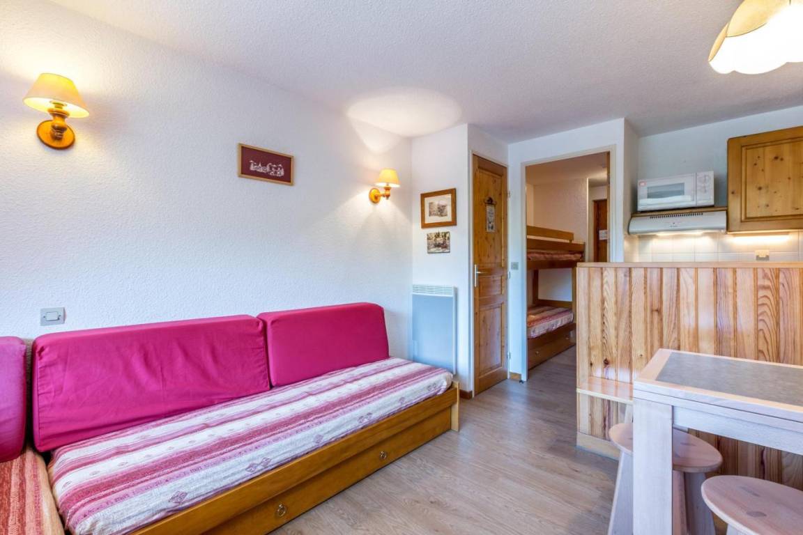 Diese Residenz liegt oben im Dorf La Clusaz, 250 m vom Telemix, dem Sessellift Bossonet und dem Skilift sowie den Geschäften entfernt. Vor der Residenz befindet sich eine Shuttle-Haltestelle, mit der Sie sich im Resort fortbewegen können. Fläche von ungefähr 22 m². 1te Etage. Orientierung : Süd. Blick station. Wohnzimmer mit 2 Sofabetten (80). offener Schlafbereich mit 2 Stockbetten (70). Kochnische mit Geschirrspülmaschine, Mikrowellenherd, kleiner Backofen, 2 Glaskeramikkochfelder, Kühlschrank (122L). Badezimmer mit Badewanne, Waschbecken, Handtuchtrockner. separates WC. Balkon. Die oberen Betten sind nicht für Kinder unter 6 Jahren geeignet.