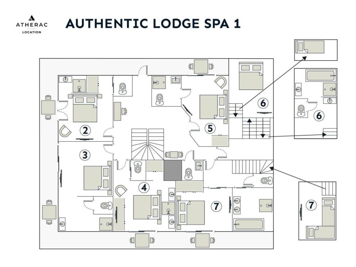 Fläche von ungefähr 415 m². Orientierung : Nord. Niveau 0 : Schlafzimmer mit Dusche, Doppelbett (200), , WC. Waschmaschine, Wäschetrockner. Büro mit . Niveau 1 : 2 Schlafzimmer mit Doppelbett (160), Waschraum, WC. 2 Schlafzimmer mit , Doppelbett (160), Waschraum, WC. Schlafzimmer mit Dusche, Doppelbett (160), Einzelbett (90), , WC. Schlafzimmer mit Dusche, Doppelbett (160), 2 Einzelbetten, , WC. separates WC. Terrasse mit Grillrost (l'été), Gartentisch und -stühle, Liege. Niveau 2 : Wohnzimmer mit Kamin, TV. Küche mit Fonduegerät, Raclettegerät, Wasserkocher, Kaffeemaschine (Nespresso et filtre), , Gefrierschrank, Backofen, Toaster, Geschirrspülmaschine, Mikrowellenherd, Induktionsherdplatten, Kühlschrank.