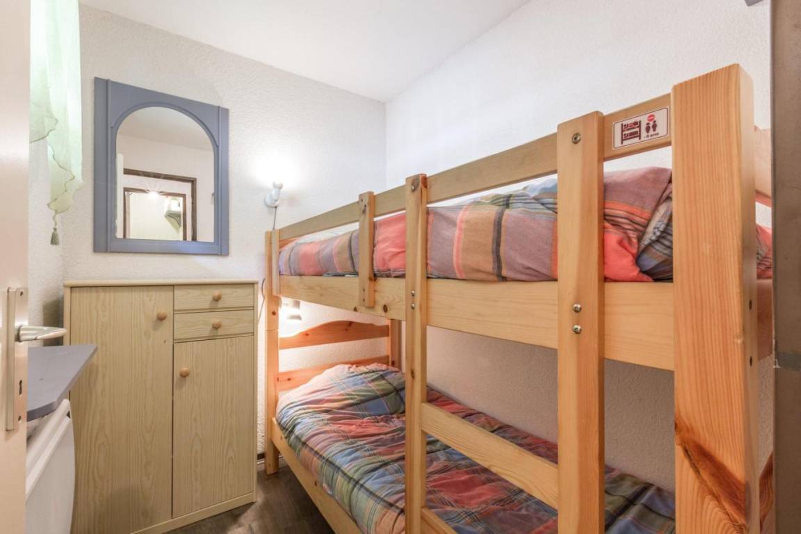 Eine Shuttle-Haltestelle ist 250 Meter entfernt. Fläche von ungefähr 38 m². Erdgeschoss. Orientierung : Süd. Wohnzimmer mit Klappschlafcouch (140). Schlafzimmer mit Doppelbett (160). offener Schlafbereich mit 2 Stockbetten (80). Kochnische mit kleiner Backofen mit Mikrowellenfunktion, Geschirrspülmaschine, 2 Glaskeramikkochfelder, Kühlschrank (200L). Badezimmer mit Badewanne, Waschbecken, Waschmaschine, Handtuchtrockner. separates WC. Terrasse. Die oberen Betten sind nicht für Kinder unter 6 Jahren geeignet.
