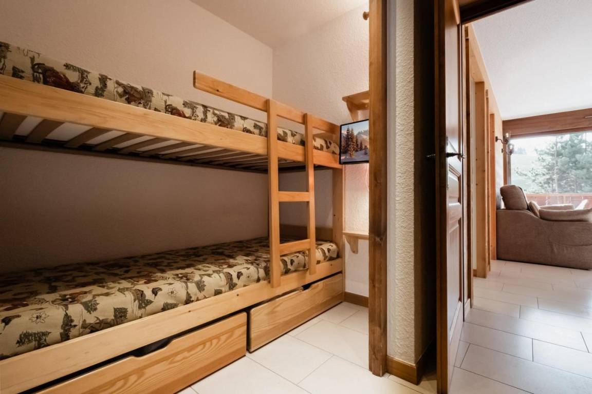 Fläche von ungefähr 34 m². Erdgeschoss. Orientierung : Süd. Blick dorf ODER Blick berg. Wohnzimmer mit Klappschlafcouch (140). Schlafzimmer mit Doppelbett (140). offener Schlafbereich mit 2 Stockbetten (80). Kochnische mit kleiner Backofen mit Mikrowellenfunktion, Geschirrspülmaschine, 2 Glaskeramikkochfelder, Kühlschrank (123L). Badezimmer mit Dusche, Waschmaschine, Waschbecken. Balkon. Die oberen Betten sind nicht für Kinder unter 6 Jahren geeignet.