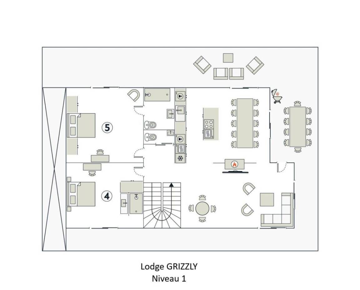 Das Chalet Lodge Grizzly ist ein 4-Sterne-Chalet in La Clusaz. Es liegt ideal am Fuße der Pisten. Genießen Sie einen außergewöhnlichen Aufenthalt im Chalet Grizzly, einem gemütlichen und eleganten Refugium, ideal für einen unvergesslichen Urlaub mit Familie oder Freunden im Herzen der Berge. Das geräumige, 200 m² große Chalet bietet Platz für 14 Personen und vereint Komfort und Gemütlichkeit mit hochwertiger Ausstattung, privater Sauna, gemütlichem Kamin und großer Terrasse.