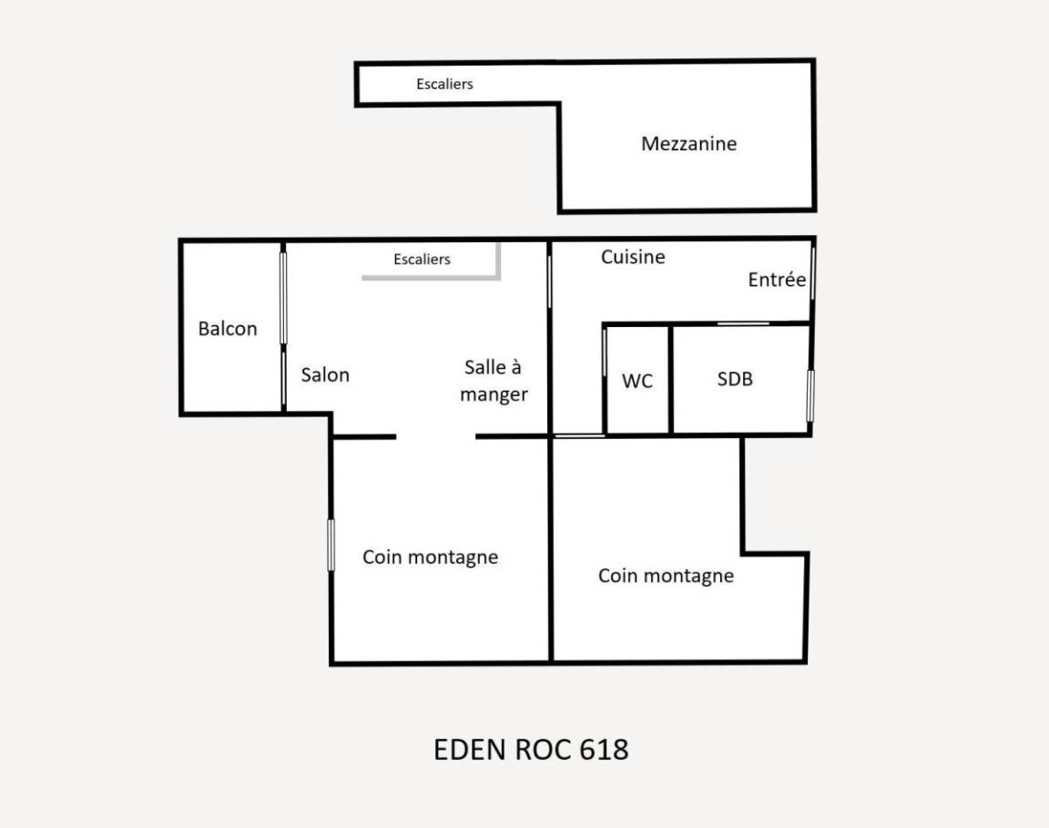 Die Residenz Eden Roc befindet sich am Fuße des Viertels RIFFROIDS im Herzen von La Clusaz. 50 m von der Skipiste Riffroids und 150 m von den beiden Seilbahnen (BEAUREGARD / EISBAHN) entfernt. Für eine einfachere Fortbewegung stehen auch Shuttles zur Verfügung. Fläche von ungefähr 76 m². 3te Etage. Orientierung : Ost. Blick dorf ODER Blick berg (Aravis). Niveau 0 : Wohnzimmer. Schlafzimmer mit Doppelbett (140). offener Schlafbereich mit 2 Einzelbetten (90). Kochnische mit kleiner Backofen mit Mikrowellenfunktion, Geschirrspülmaschine, 2 Glaskeramikkochfelder, Kühlschrank. Waschräume. WC. Balkon. Niveau 1 : mit 2 Einzelbetten (80).