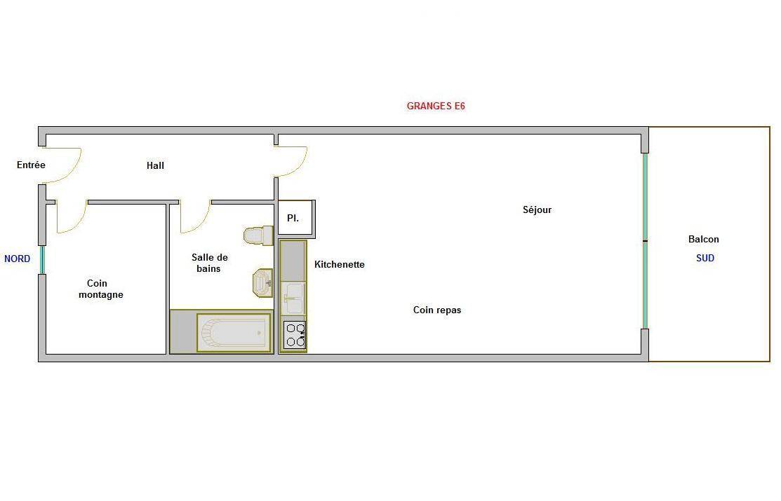 Die Residenz Granges E liegt ideal im oberen Teil des Dorfes, nur 200 m vom Télémix, dem Sessellift Bossonnet und dem Skilift entfernt, von wo aus je nach Schule die Skikurse starten. Geschäfte sind 150 m entfernt, und eine Shuttlebushaltestelle in 50 m Entfernung erleichtert die Fortbewegung im Resort. Ein praktischer und komfortabler Ort, um Ihren Wintersporturlaub in vollen Zügen zu genießen. Fläche von ungefähr 33 m². Erdgeschoss. Orientierung : Süd. Wohnzimmer mit Klappschlafcouch (140). offener Schlafbereich mit 2 Stockbetten (80). Kochnische mit Backofen, Geschirrspülmaschine, elektronische Herdplatten, Kühlschrank (100L). Badezimmer. Balkon. Die oberen Betten sind nicht für Kinder unter 6 Jahren geeignet.