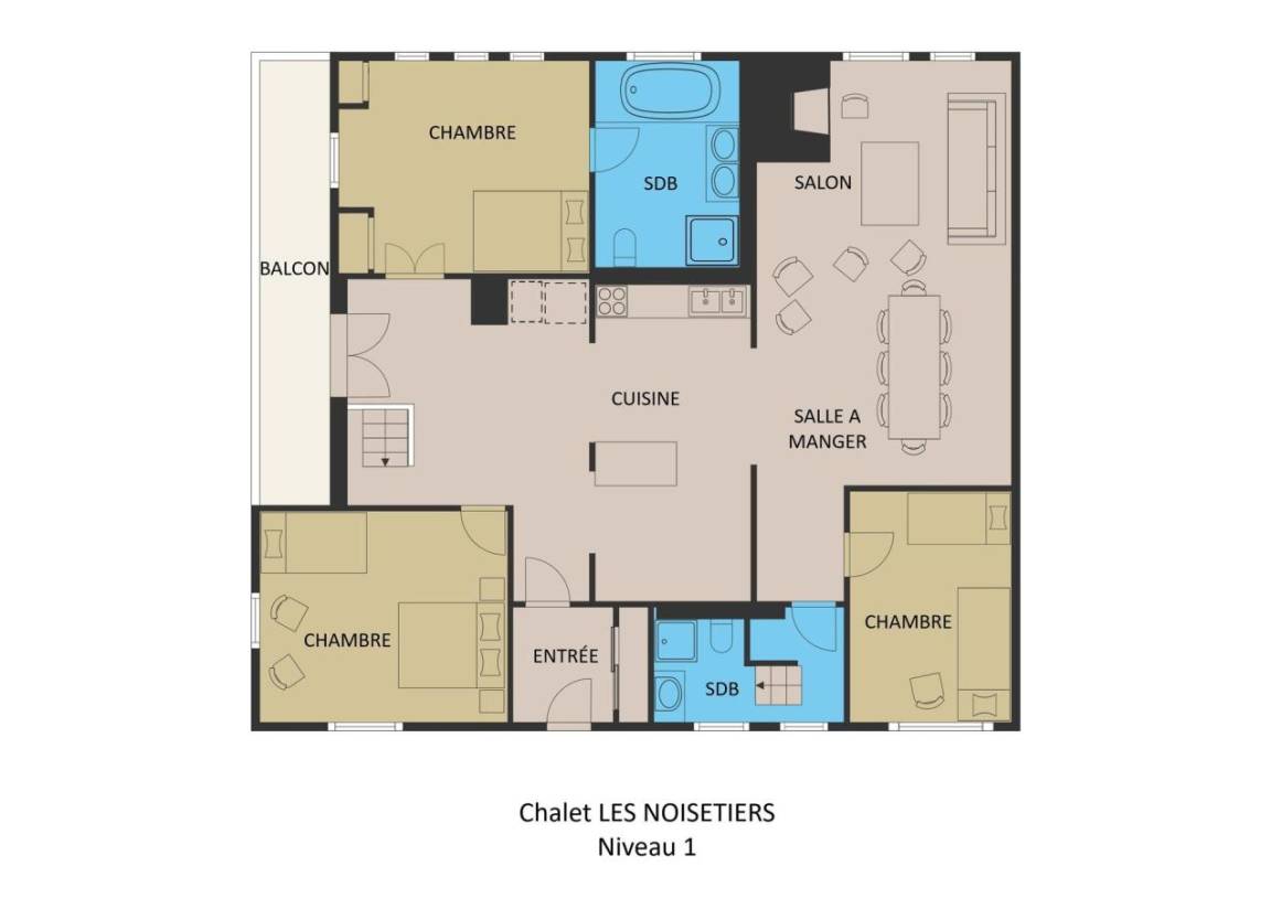 Das Chalet Noisetiers ist ein traditionelles savoyisches Chalet, das 3,6 km vom Dorf entfernt liegt. Das Dorf La Clusaz bietet Ihnen sowohl Momente der Entspannung als auch sportliche Aktivitäten für einen Aufenthalt, der für die ganze Familie geeignet ist. Fläche von ungefähr 174 m². Orientierung : Süd, West. Niveau 0 : Wohnzimmer mit Kamin. Schlafzimmer mit 2 Einzelbetten (90). Schlafzimmer mit Doppelbett (140), 2 Stockbetten. Schlafzimmer mit Doppelbett (140), , WC. Küche mit Backofen, Geschirrspülmaschine, Mikrowellenherd, 2 Induktionsherdplatten, Kühl-Gefrier-Kombination. Waschräume mit WC. Balkon. Waschmaschine, Wäschetrockner. Niveau -1 : Schlafzimmer mit Doppelbett (140), Waschraum, WC. Terrasse. Die oberen Betten sind nicht für Kinder unter 6 Jahren geeignet.