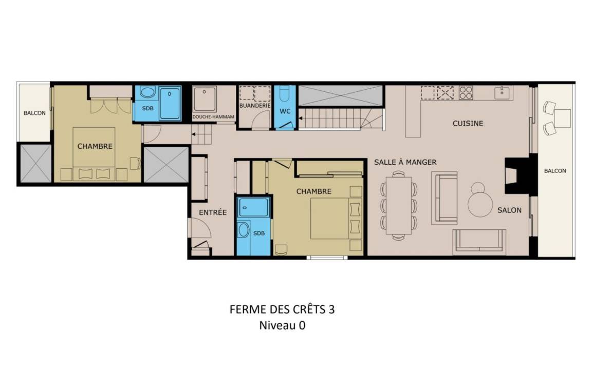 Die Residenz Ferme des Crêts liegt im Arravis-Tal, etwa 1,2 Kilometer vom Dorf entfernt. Eine Shuttle-Haltestelle befindet sich 170 Meter entfernt. Fläche von ungefähr 119 m². 1te Etage. Orientierung : Ost, West. Blick berg. Niveau 0 : Wohnzimmer mit Kamin. 2 Schlafzimmer mit 2 zwei Einzelbetten (80). Küche mit Backofen, Geschirrspülmaschine, Mikrowellenherd, 2 Induktionsherdplatten, Kühl-Gefrier-Kombination. 2 duschräume mit Dusche, Handtuchtrockner. separates WC. Waschküche mit Waschmaschine, Wäschetrockner. Balkon. Dampfbad-dusche. Niveau 1 : Mansardenzimmer mit 2 zwei Einzelbetten (90). Mansardenzimmer mit 2 zwei Einzelbetten (80). Badezimmer mit Badewanne, Handtuchtrockner. separates WC.