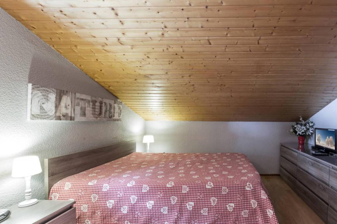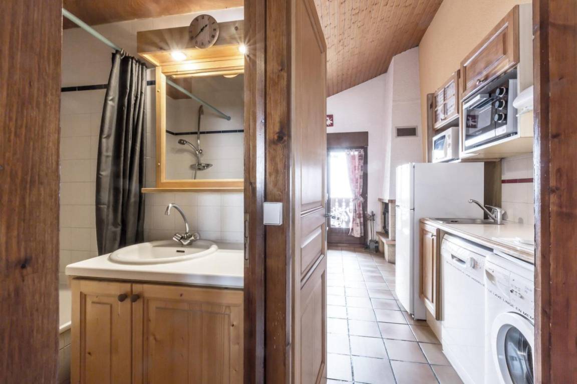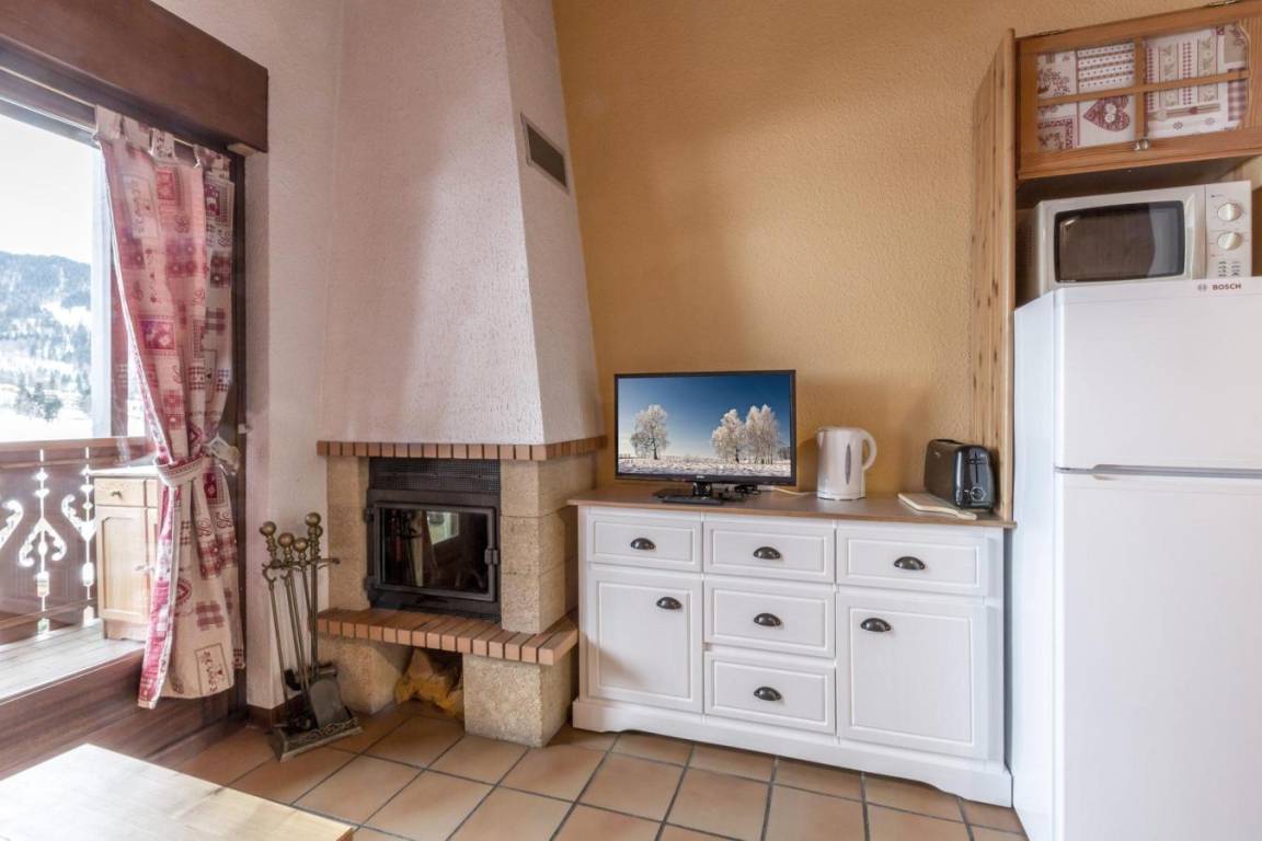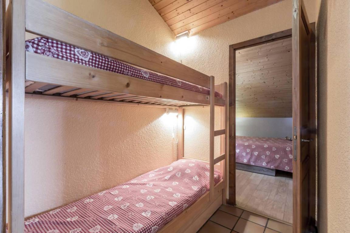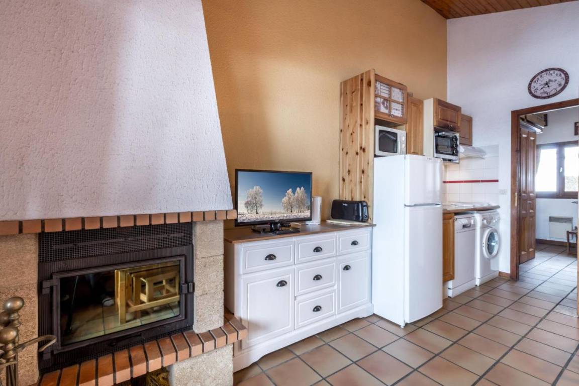 Fläche von ungefähr 37 m². 2te Etage. Orientierung : Süd. Blick dorf ODER Blick berg. Wohnzimmer mit Kamin. Schlafzimmer mit Doppelbett (140). offener Schlafbereich mit 2 Stockbetten (70). Kochnische mit Waschmaschine, Geschirrspülmaschine, Mikrowellenherd, kleiner Backofen, 2 elektronische Herdplatten, Kühlschrank (204L). Badezimmer mit Badewanne, Waschbecken. separates WC. Balkon. Die oberen Betten sind nicht für Kinder unter 6 Jahren geeignet.