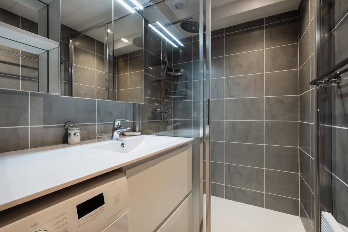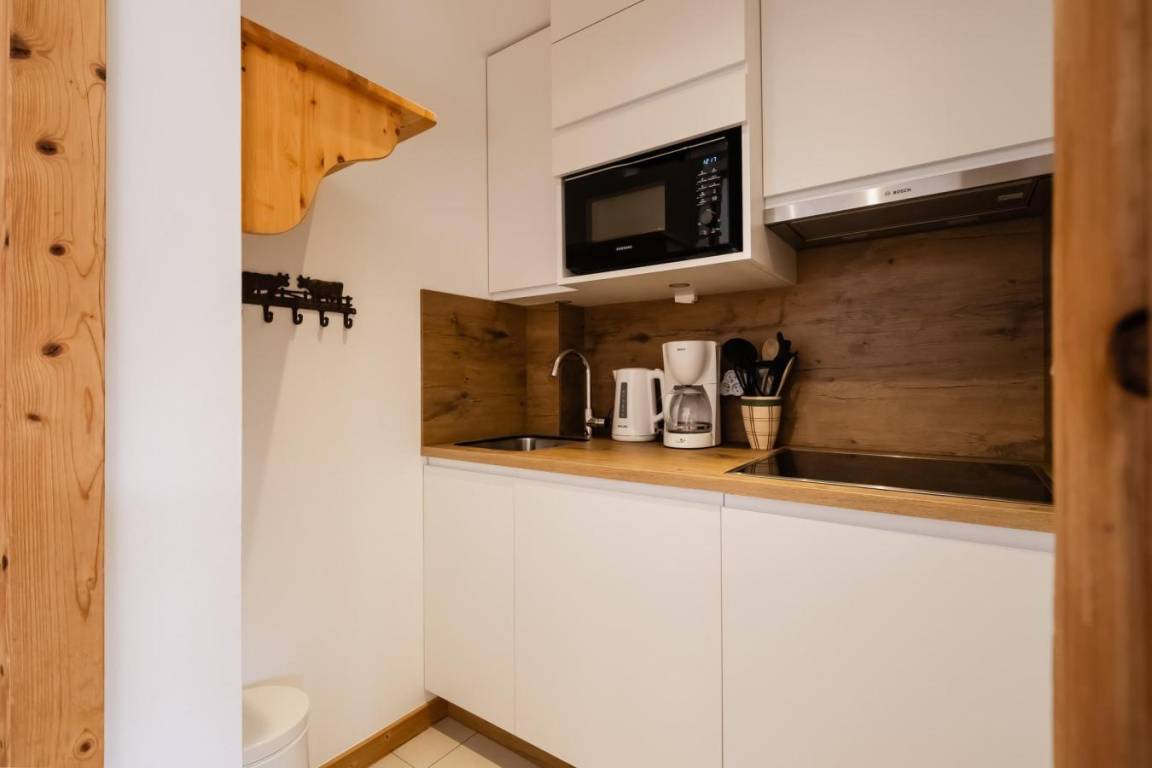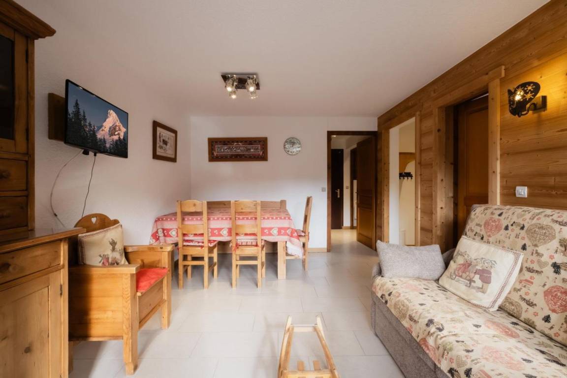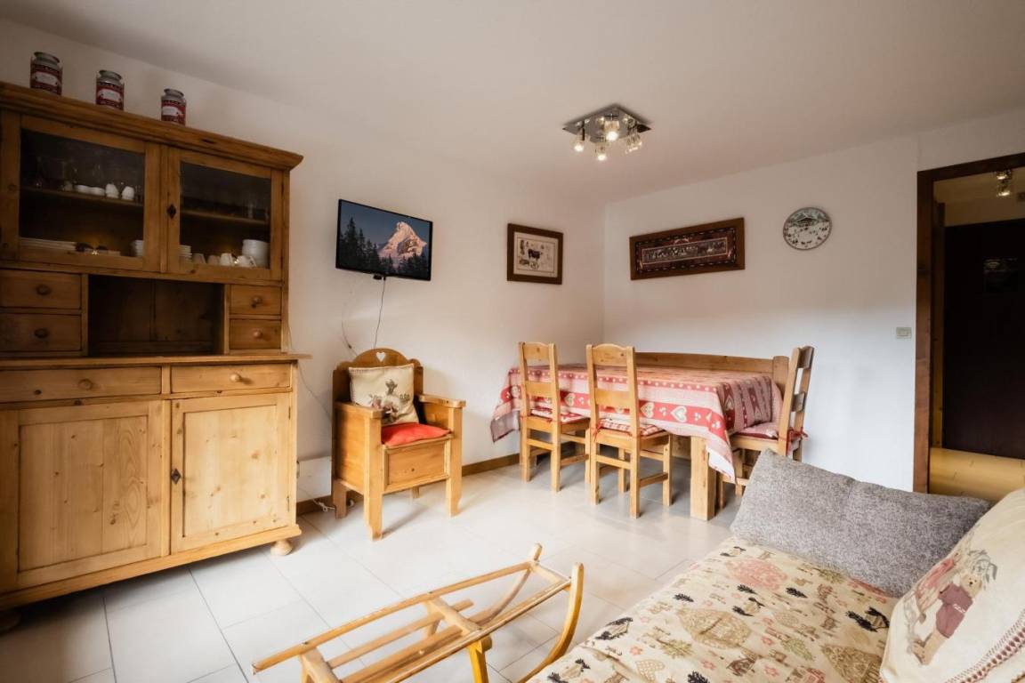 Fläche von ungefähr 34 m². Erdgeschoss. Orientierung : Süd. Blick dorf ODER Blick berg. Wohnzimmer mit Klappschlafcouch (140). Schlafzimmer mit Doppelbett (140). offener Schlafbereich mit 2 Stockbetten (80). Kochnische mit kleiner Backofen mit Mikrowellenfunktion, Geschirrspülmaschine, 2 Glaskeramikkochfelder, Kühlschrank (123L). Badezimmer mit Dusche, Waschmaschine, Waschbecken. Balkon. Die oberen Betten sind nicht für Kinder unter 6 Jahren geeignet.