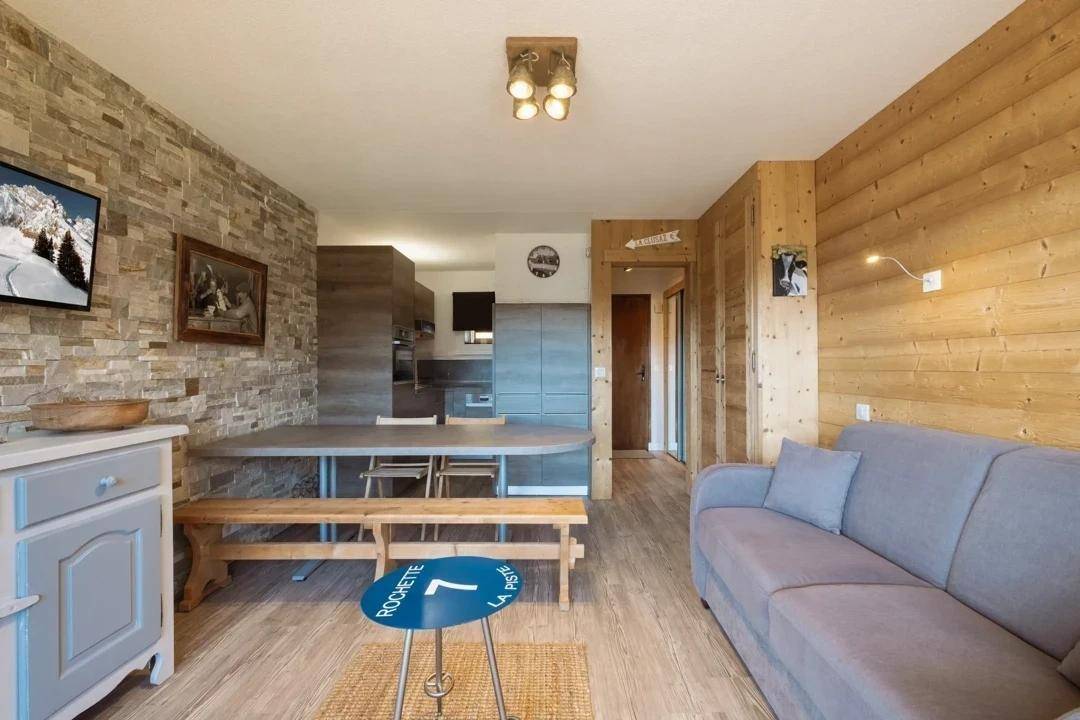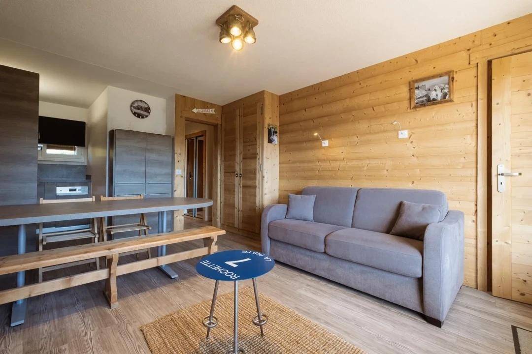 Sie genießen einen Blick auf die Aravis-Bergkette. Shuttle-Haltestelle 130 Meter entfernt. Fläche von ungefähr 37 m². 1te Etage. Orientierung : Süd. Blick berg. Wohnzimmer mit Klappschlafcouch (140). Schlafzimmer mit Doppelbett (140). offener Schlafbereich mit 2 Stockbetten (80). Kochnische mit Backofen, Geschirrspülmaschine, Mikrowellenherd, 2 Glaskeramikkochfelder, Kühlschrank (137L). separates WC. Waschräume mit Dusche, Waschmaschine, Waschbecken, Handtuchtrockner. Balkon. Die oberen Betten sind nicht für Kinder unter 6 Jahren geeignet.