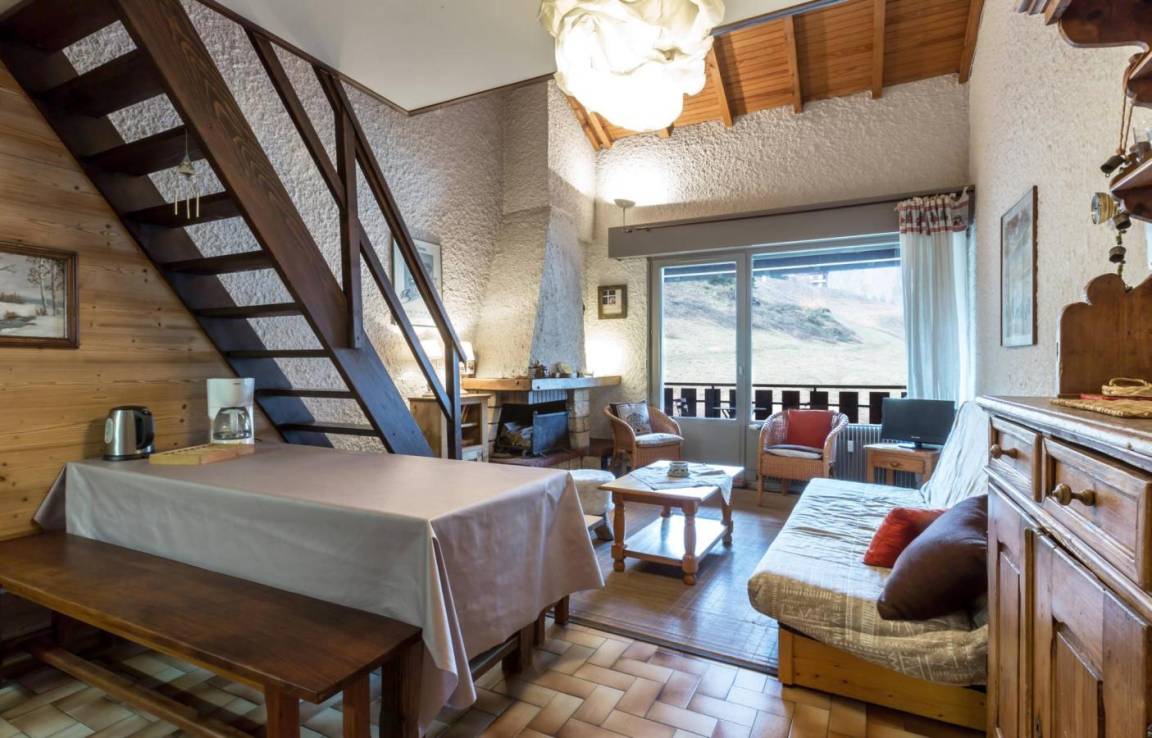 Diese Residenz genießt eine privilegierte Lage im Herzen des Resorts in einer ruhigen Gegend. Der nächste Sessellift ist 50 m entfernt (Crêt du Merle). Eine Haltestelle des kostenlosen Shuttles befindet sich 80 m entfernt. La Clusaz ist ein authentischer und dynamischer Ferienort im Herzen des Aravis-Massivs. Genießen Sie während Ihres gesamten Aufenthalts zahlreiche Aktivitäten. Fläche von ungefähr 55 m². Einige als Maisonette. 3te Etage. Orientierung : Süd, Süd-West, West. Niveau 0 : Wohnzimmer mit Kamin (décorative), Klappschlafcouch (130). Schlafbereich mit 2 Stockbetten (90). mit Backofen, Geschirrspülmaschine, Mikrowellenherd, Glaskeramikkochfelder, Kühlschrank (141L). Badezimmer. separates WC. Balkon. Niveau 1 : Zwischengeschoss. Schlafzimmer mit Doppelbett (140). Die oberen Betten sind nicht für Kinder unter 6 Jahren geeignet.