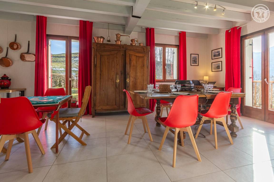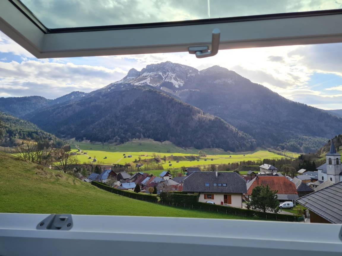 „Chalet très confortable dans un cadre pastoral magnifique, bénéficiant d'une vue superbe sur le massif des Bauges et le Colombier en particulier et d'un ensoleillement très agréable depuis le grand séjour et les chambres. Le village de La Compote est aussi très attachant avec ses maisons anciennes mais qui a su rester très vivant. Très bon accueil de la part des hôtes également. Nous recommandons vivement ce gîte !“