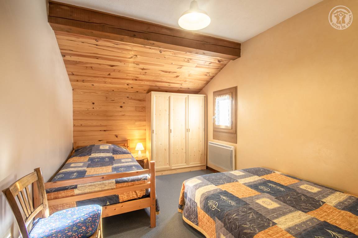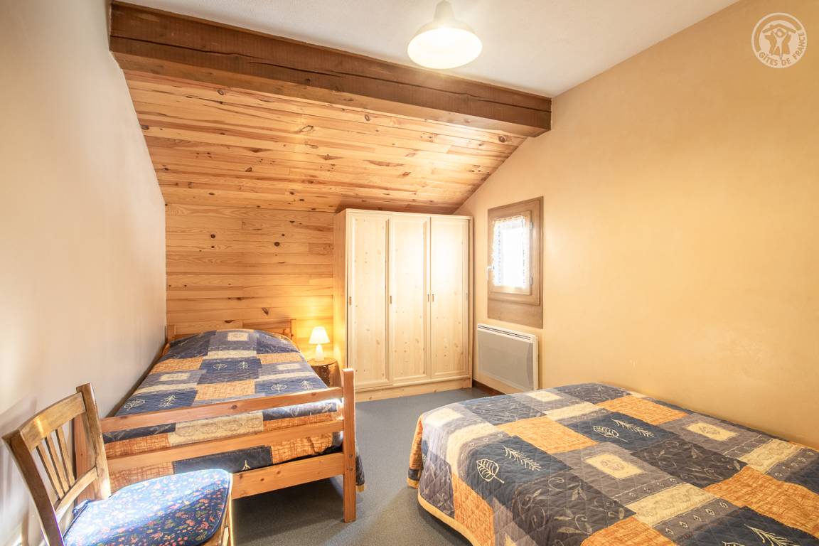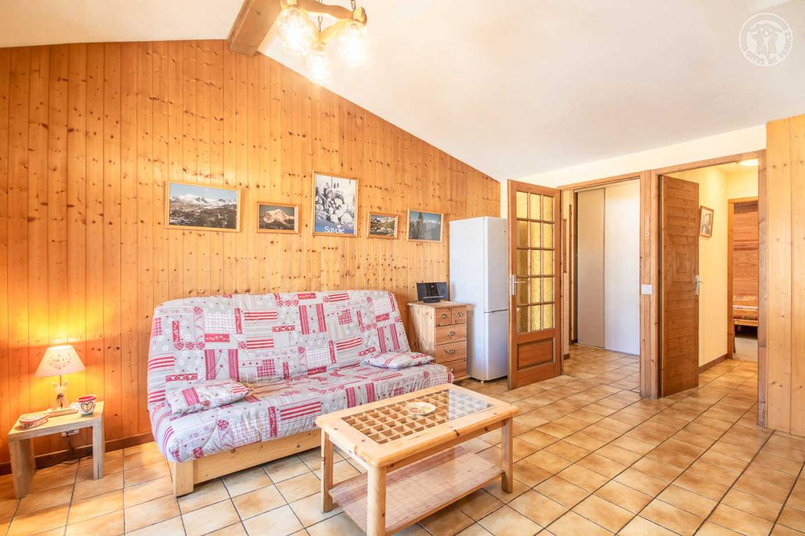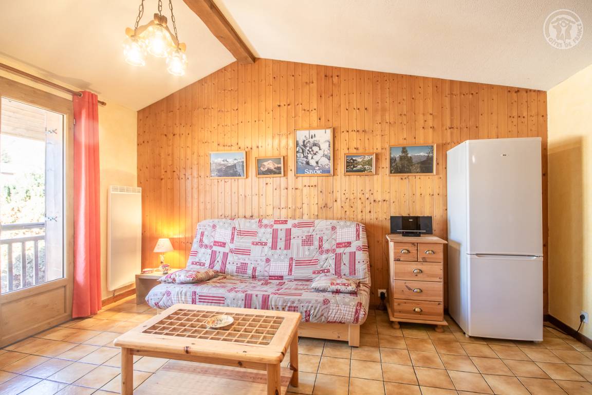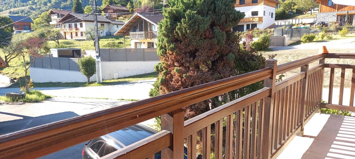 Ferienhaus im Haus des Eigentümers mit separatem Eingang. 1. Stock: Wohnzimmer mit Küchenbereich (1 Schlafsofa für 2 Personen), Radiokabine, 2 Schlafzimmer (1 Doppelbett / 2 Einzelbetten, davon ein Bett 120 x 190 cm), Badezimmer (Badewanne mit Duschstange), separates WC. Balkon. Skifahren La Roche/la Plagne 13 km.