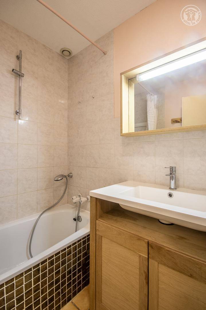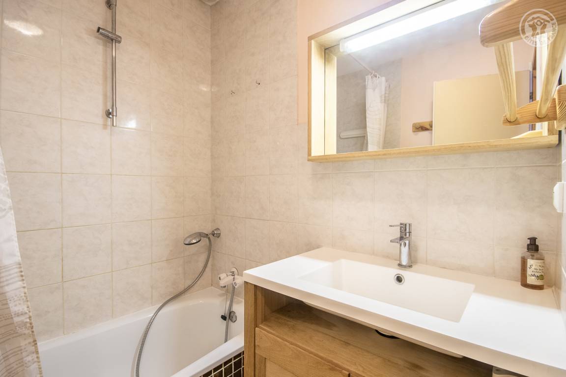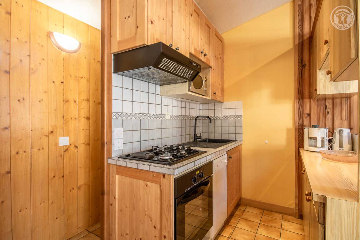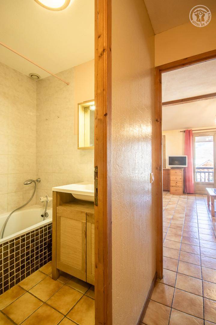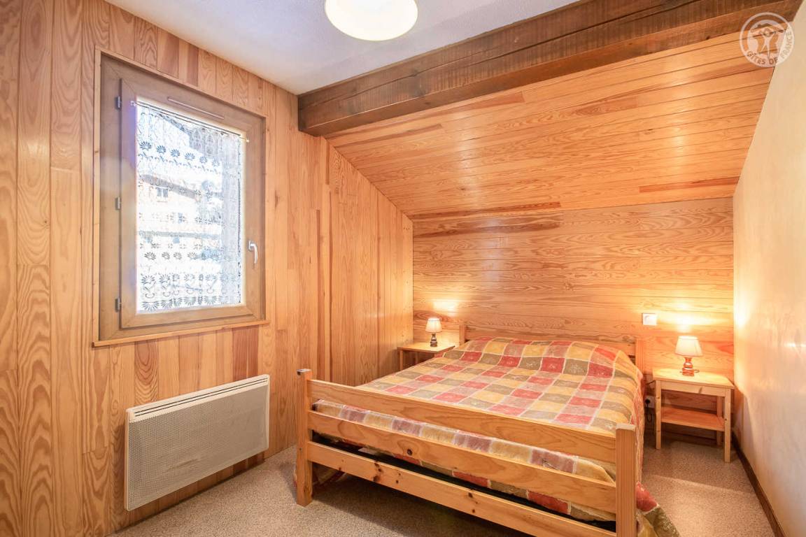Ferienhaus im Haus des Eigentümers mit separatem Eingang. 1. Stock: Wohnzimmer mit Küchenbereich (1 Schlafsofa für 2 Personen), Radiokabine, 2 Schlafzimmer (1 Doppelbett / 2 Einzelbetten, davon ein Bett 120 x 190 cm), Badezimmer (Badewanne mit Duschstange), separates WC. Balkon. Skifahren La Roche/la Plagne 13 km.