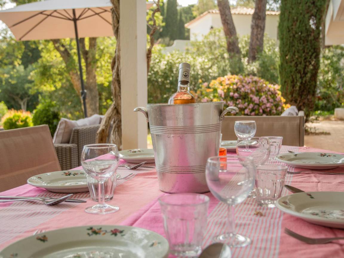Dusche(im Garten), Heizung(elektrisch), 2x Terrasse(alleinige Nutzung, 60 m²), Garten(alleinige Nutzung, teilweise umzäunt, illuminiert, 2000 m²), Gartenmöbel, 2x Parkplatz, Boulebahn, Sandkasten, 1x Kinderbett (ohne Bettwäsche), 1x Hochstuhl, Bügelbrett, Bügeleisen, Gartenlounge, Plancha