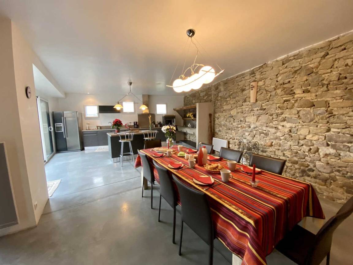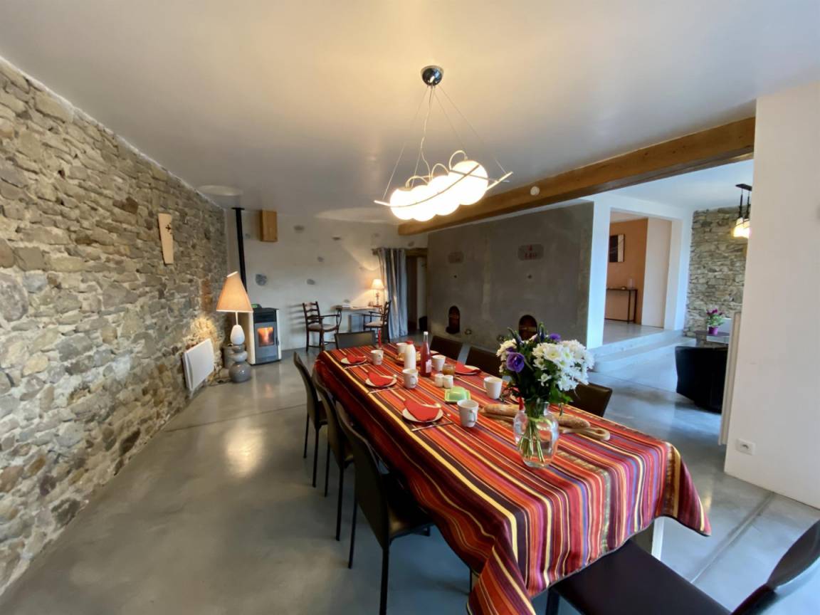 „Le gîte se prête parfaitement à des retrouvailles familiales. Pièce de vie spacieuse et permettant de grandes tablées. L'espace chambres a permis à chacun d'être autonome. Une belle adresse et un joli coin pour randonner. Nous reviendrons surêment. Merci pour tout et la qualité de votre accueil.“