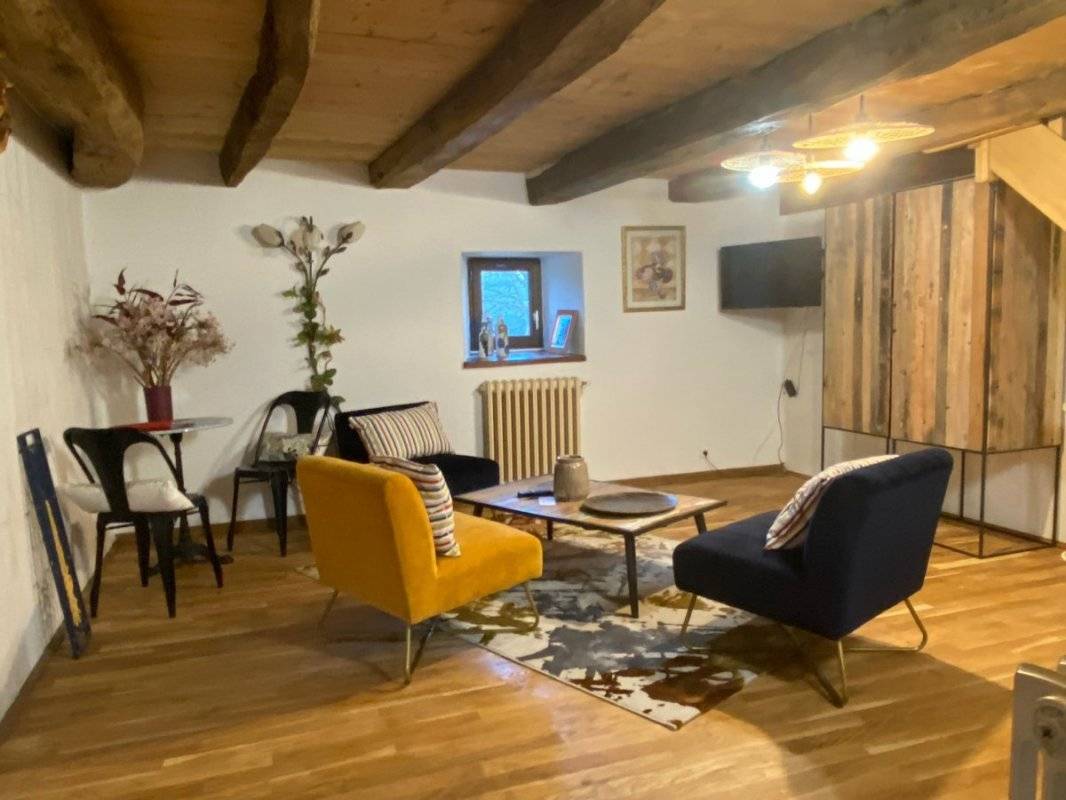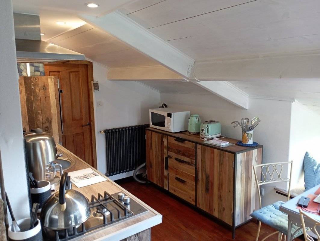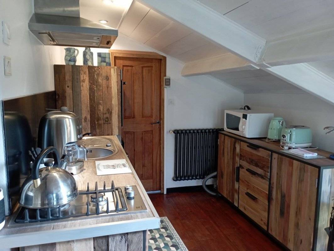 Mini-Gîte in einem Weiler mit mehreren Unterkünften. Hochparterre: Wohnraum mit Kochecke, Sitzecke, Dusche/WC. 1. Stock: Doppelzimmer, Zusatzbett auf Anfrage. Gaszentralheizung. Garten, Gartenmöbel, Grill, Terrasse.