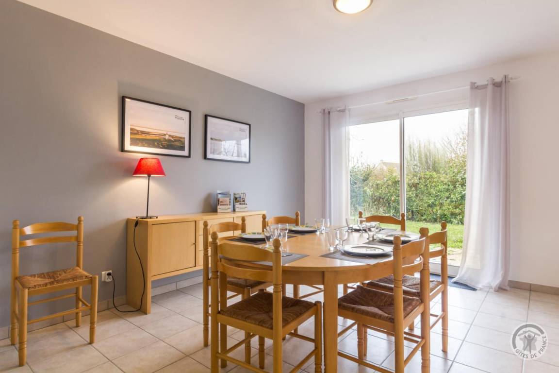 Freistehendes Haus. Eingang mit separatem WC. Wohnzimmer (TV, DVD-Player, WLAN, Stereoanlage). Offene Küche (Backofen, Cerankochfeld, Geschirrspüler, Mikrowelle, Kühlschrank mit Gefrierfach, Senseo-Kaffeemaschine). Waschküche (Waschmaschine, Wäschetrockner). Obergeschoss: Schlafzimmer 1 (1 Doppelbett 160x200 cm), Schlafzimmer 2 (3 Einzelbetten 90x200 cm), separates WC und Duschbad. Babyausstattung auf Anfrage. Bettwäsche und Handtücher werden gestellt. Reinigungsservice gegen Aufpreis. Elektrische Heizung inklusive. Privater, umzäunter Garten. Terrasse. Gartenmöbel. Grill. Gemeinsamer Spielplatz. Parkplatz.
