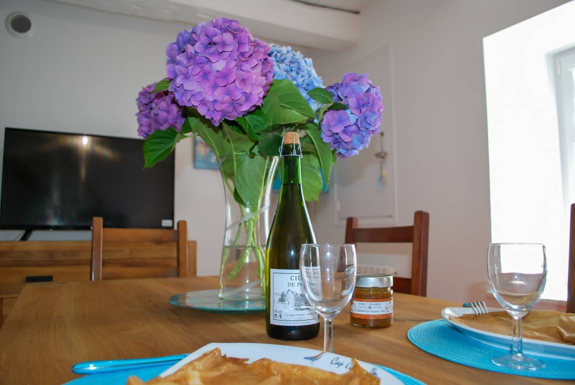 „Nous avons été accueillis de la plus belle des façons qui soit, et nous nous sommes sentis attendus. Le sourire et la disponibilité de notre hôte ont été grandement appréciés. Toujours disponible et de très bon conseil sur les diverses visites à effectuer. Et quel plaisir de disposer d’un bol de fraises du jardin de notre hôte et d’un bouquet d’Hortensias sur la table. Nous nous sommes sentis comme chez nous. La maison est parfaitement bien équipées, agencée et propre, les lits quand à eux très confortables. Le soleil nous a tenu compagnie durant tout le week end et ce fut un séjour merveilleux dans cette si belle région. Encore un grand merci pour votre accueil“