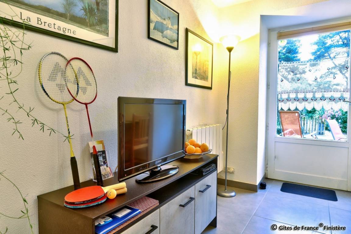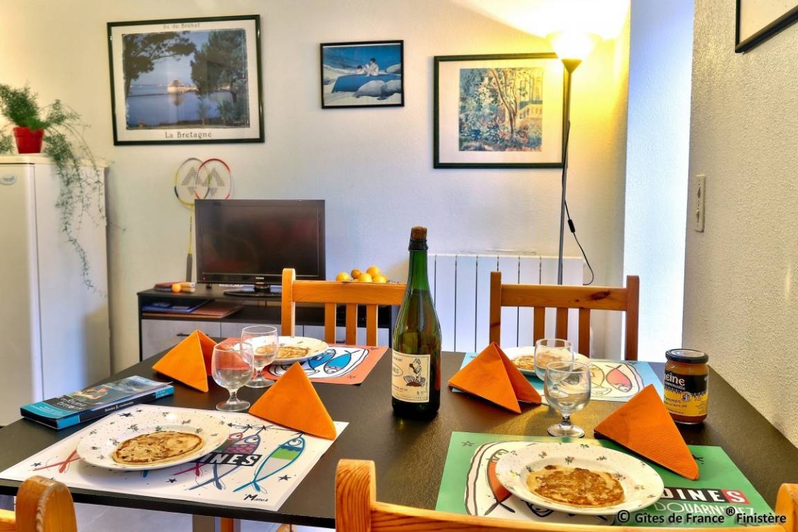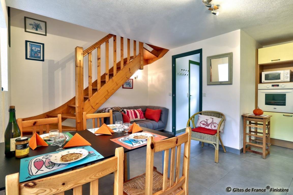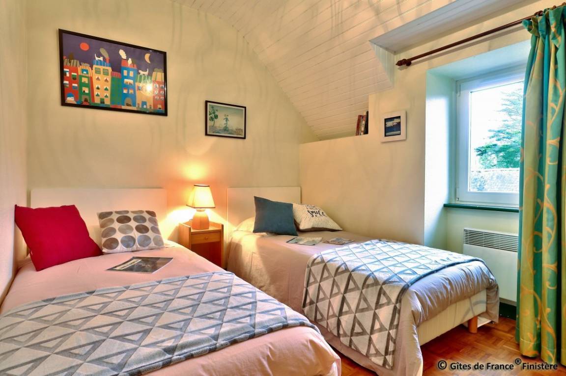 Ländliches, lang gestrecktes Anwesen mit 4 Gîtes zwischen Concarneau und Bénodet (Thalassozentrum) / dieses Reihenhaus grenzt an einen anderen Gîte. EG: Küche/Wohn-/Esszimmer mit TV (DVD Laufwerk), WC. 1. Stock: Doppelzimmer, Zweibettzimmer, Bad. E-Heizung. Wi-Fi. Waschmaschine und Trockner in einem Nebengebäude. Eigene Terrasse, Gartenmöbel, Grill. Überdachter Platz. Tischtennisplatte, Tischfußball, Kinderspielplatz. Wiesengrundstück. Hof.