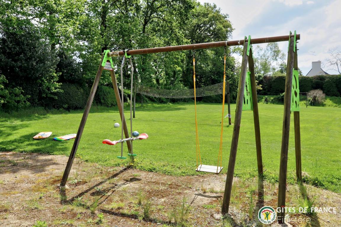 „Nous avons passé un séjour très agréable, le gite est petit mais cosy, de caractère breton, dans un environnement paisible. La foret et la nature sont proches, on peut voir des biches en bord de terrain. Il y a un grand espace commun permettant des activités (pingpong, volleys..), des poules.. et la mer est accessible à pied (20mn) ou en vélo (10mn).. Les propriétaires sont accueillants et disponibles.“