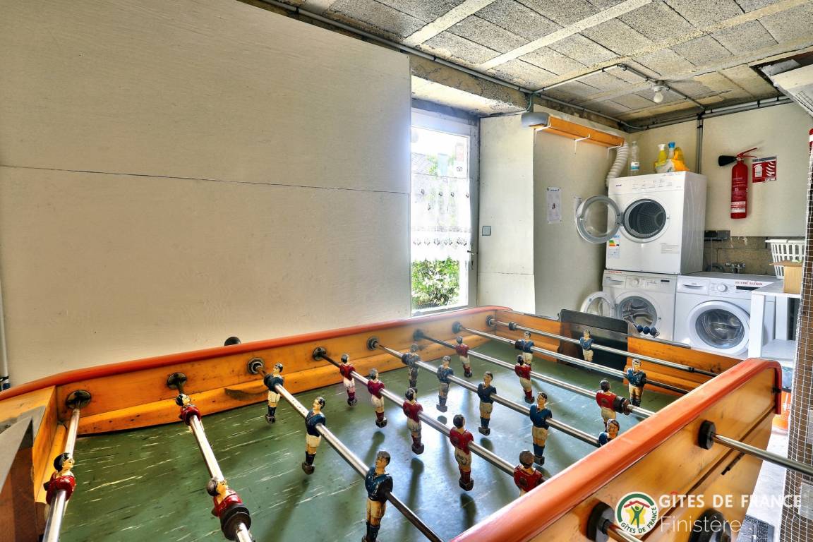 Ländliches, lang gestrecktes Anwesen mit 4 Gîtes zwischen Concarneau und Bénodet (Thalassozentrum) / dieses Reihenhaus grenzt an einen anderen Gîte. EG: Küche/Wohn-/Esszimmer mit TV (DVD Laufwerk), sep. WC. 1. Stock: Doppelzimmer, Zweibettzimmer, Bad. Wi-Fi. E-Heizung inklusive. Waschmaschine und Trockner in einem Nebengebäude. Eigene Terrasse, Gartenmöbel, Grill. Überdachter Platz. Tischtennisplatte, Tischfußball, Kinderspielplatz. Wiesengrundstück. Hof.