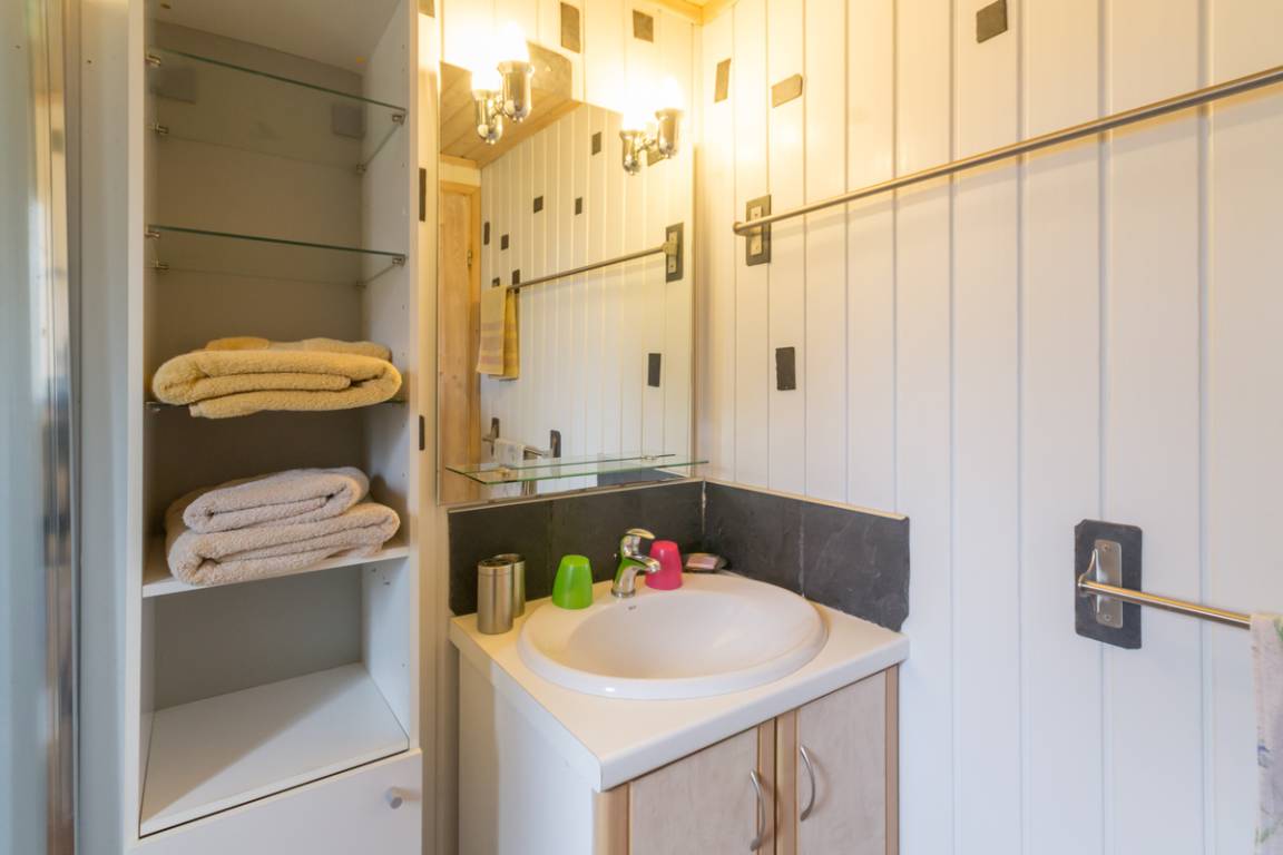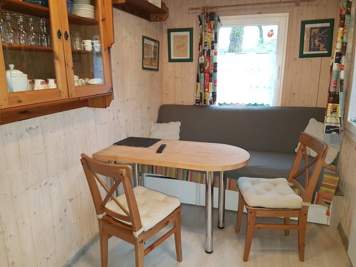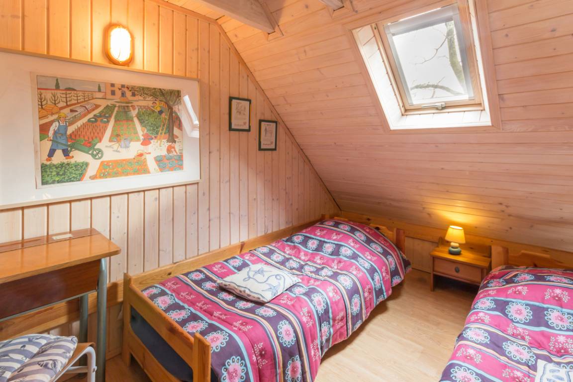 „L'Ecole d'Antan est parfaite. Les objets qui la décorent sont très jolis mais comme ilssont placés en hauteur ils ne gênent pas. Il ne manque rien ! Tout est optimisé, bienpensé. C'est propre, cocooning. On s'y sent très bien. Pas un bruit. Le chalet est dans un écrin de verdure: Arbustes variés, plantes aromatiques... La faune et la flore raviront les amoureux de la nature.“