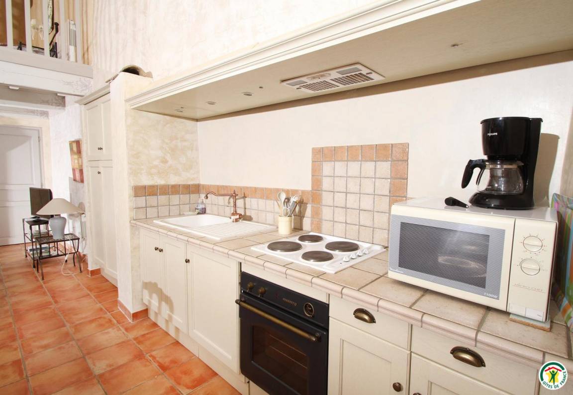An das Zweithaus des Vermieters angrenzendes Ferienhaus auf 2 Etagen (1. und 2. Stock) in einer restaurierten Seidenraupenzucht. 1. Stock: Wohnraum mit Küchenzeile und Sitzecke, 2 Schlafsofas für jeweils 1 Person (1,40 m), Dusche mit Bad. 2. Stock: 1 Schlafzimmer im offenen Zwischengeschoss (1 Bett 160 cm). Öffentlicher Parkplatz in der Nähe. Optional: Carport im Hof für einen Zuschlag von 50 €/Woche.