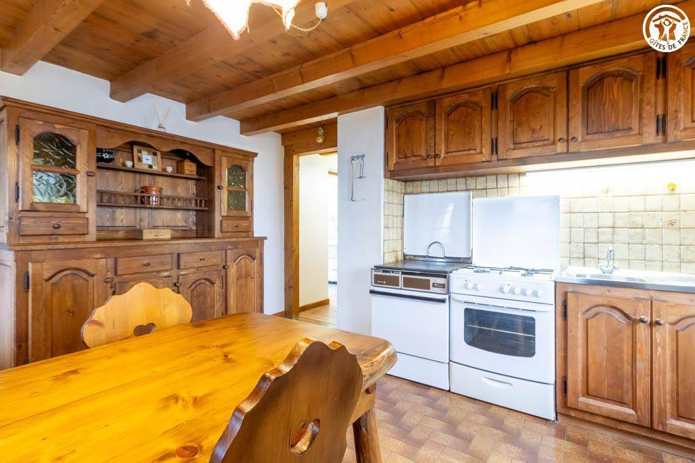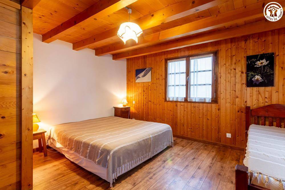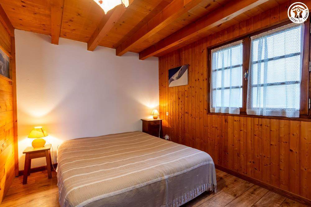 Individuelles Chalet. 1. Etage (Zugang über eine Treppe hinunter/schräge Seite): Wohnküche, 1 Schlafzimmer (1 Doppelbett, 2 Einzelbetten), Badezimmer (Dusche/WC). Netzstrom. Holzofen. Balkon + überdachte Balkonterrasse + Terrasse + abschüssiges Gelände. Zufahrt über eine 2 km lange asphaltierte Straße mit Parkplatz 200 m vom Chalet entfernt (oder 20 Minuten zu Fuß / privater Parkplatz am Anfang des Weges vom Plan aus)
