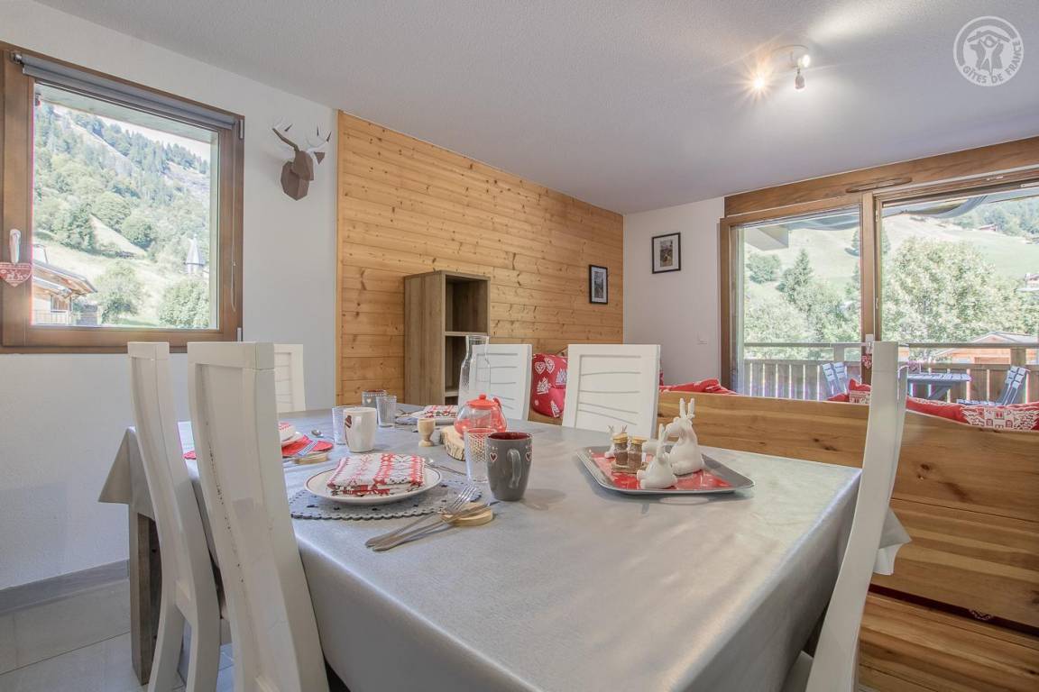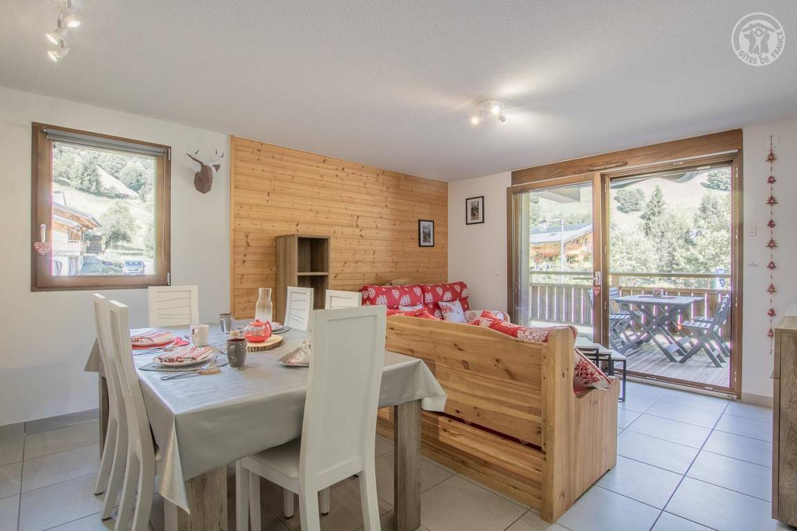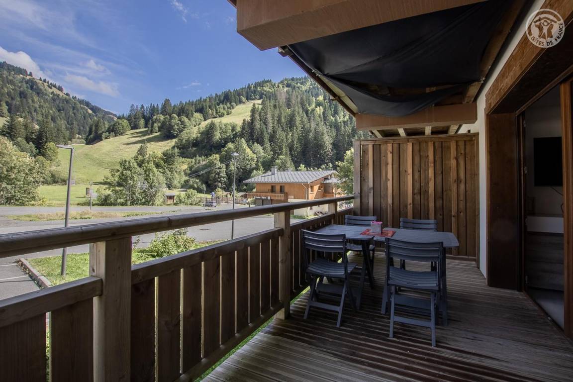 Residenz Les Portes du Mont-Blanc, bestehend aus 2 Chalets, am Eingang des Weilers Le Plan, in einem Tal gelegen, zwischen Wiesen und Wäldern, 4 km von La Giettaz und 10 km von Flumet (Lebensmittelgeschäfte während der Tourismussaison). ). Sehr komfortables Apartment mit hochwertigen Dienstleistungen und 2 Balkonterrassen, von denen eine über einen Essbereich verfügt.