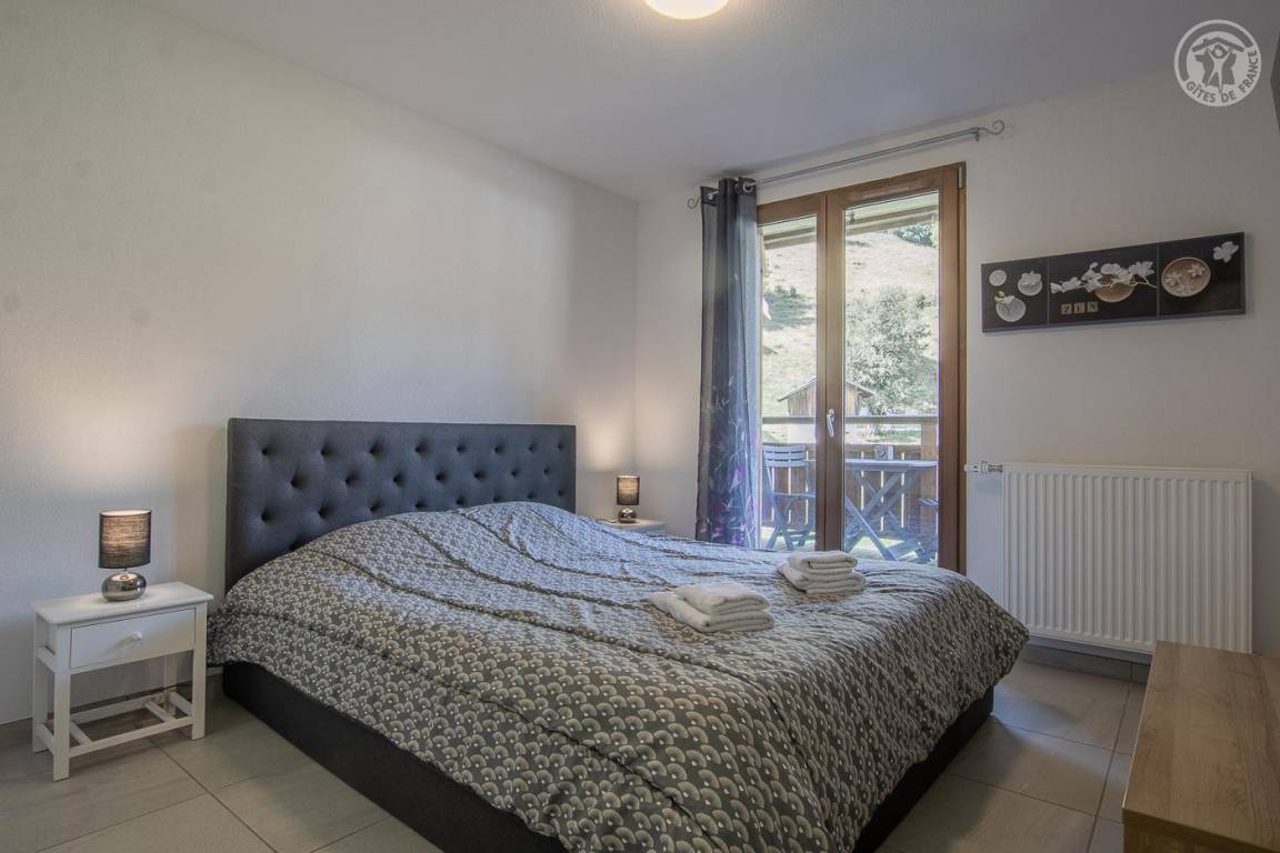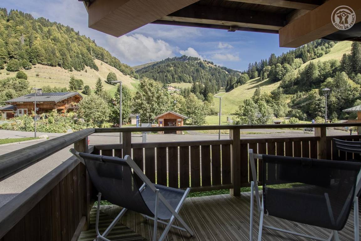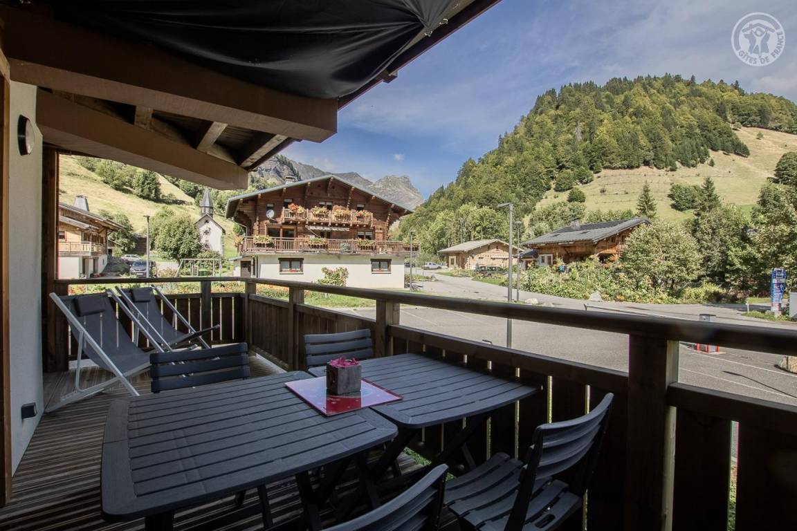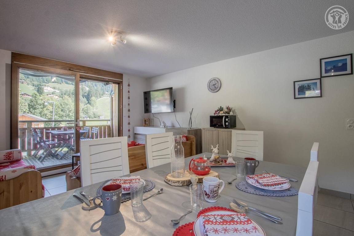 Residenz Les Portes du Mont-Blanc, bestehend aus 2 Chalets, am Eingang des Weilers Le Plan, in einem Tal gelegen, zwischen Wiesen und Wäldern, 4 km von La Giettaz und 10 km von Flumet (Lebensmittelgeschäfte während der Tourismussaison). ). Sehr komfortables Apartment mit hochwertigen Dienstleistungen und 2 Balkonterrassen, von denen eine über einen Essbereich verfügt.