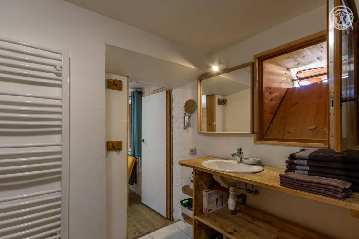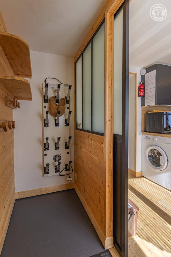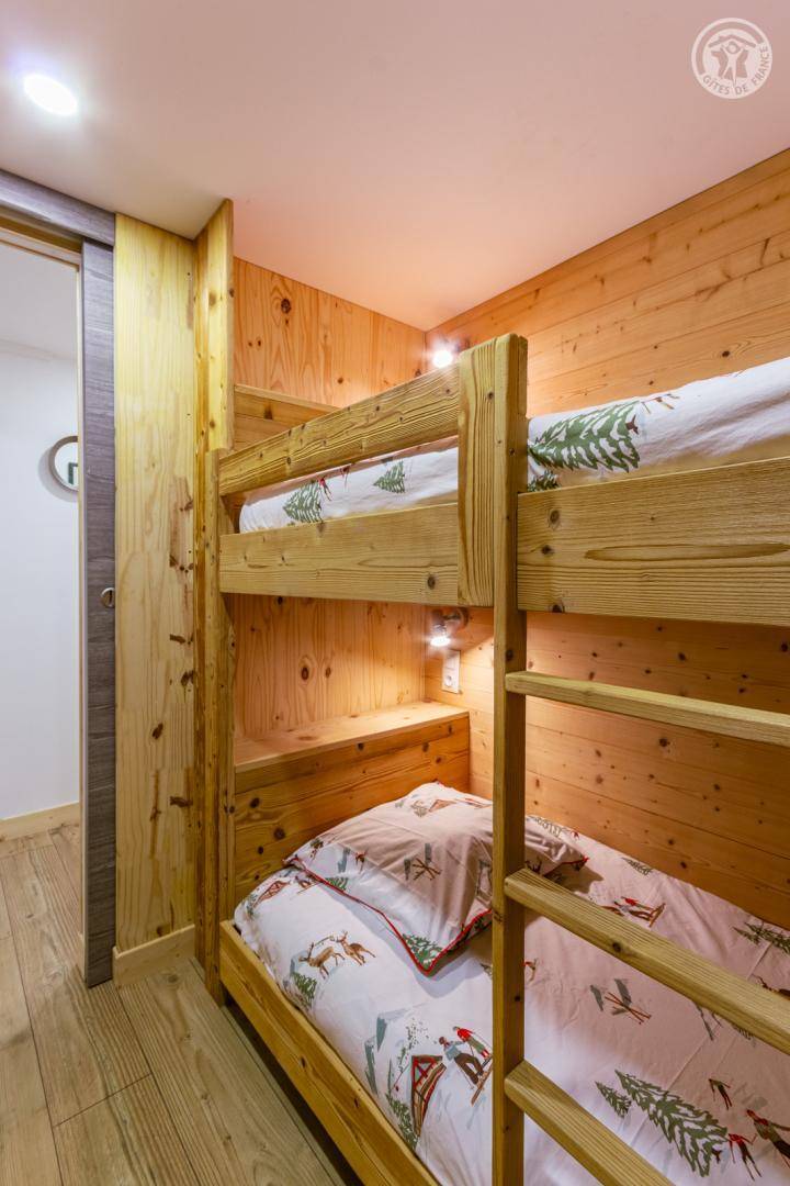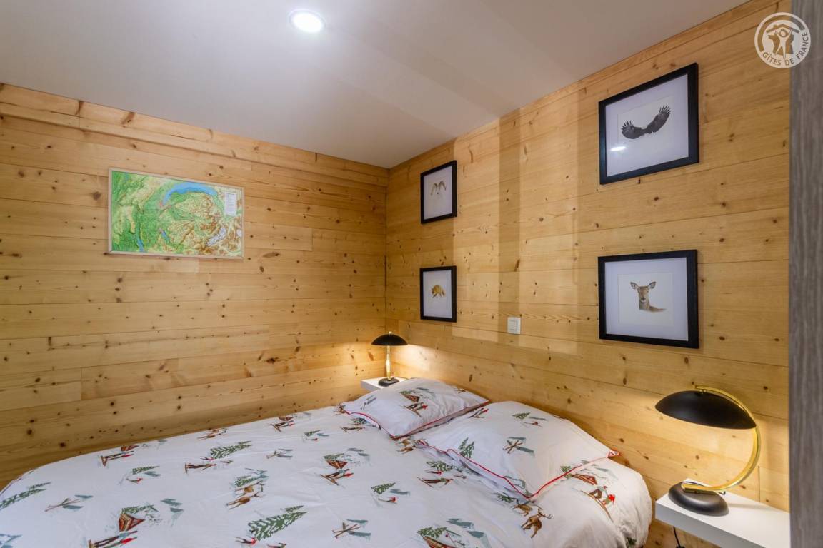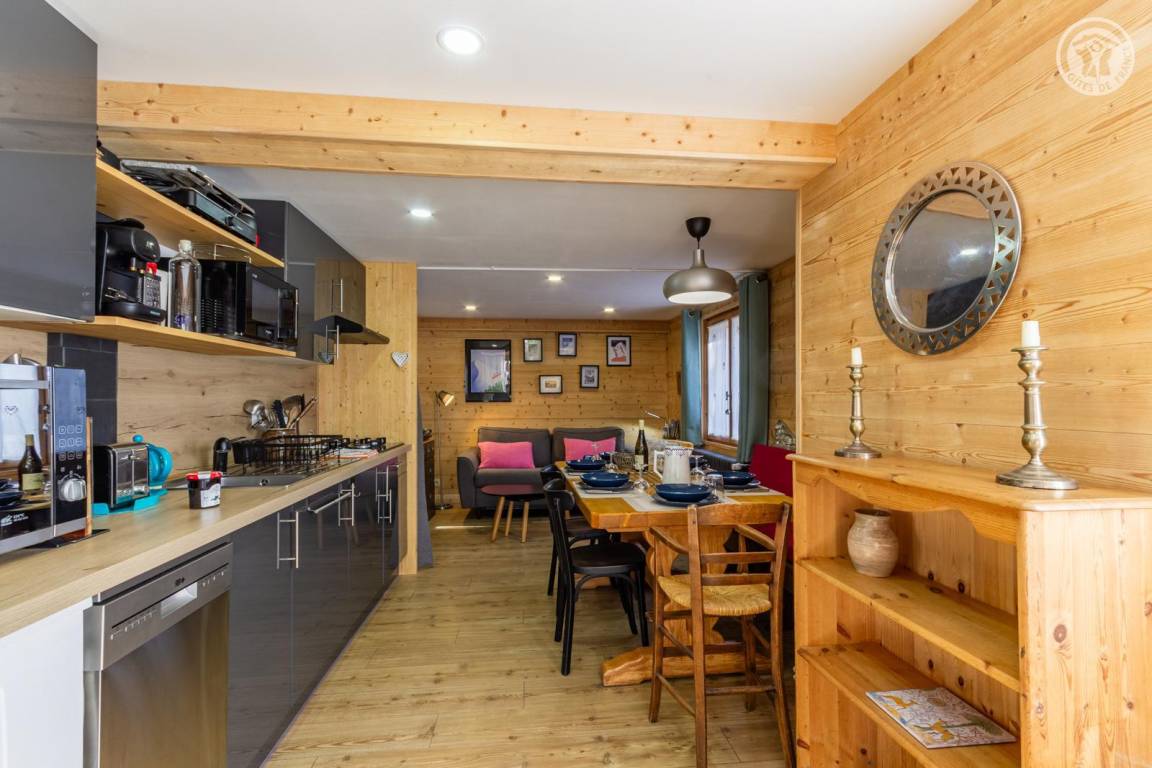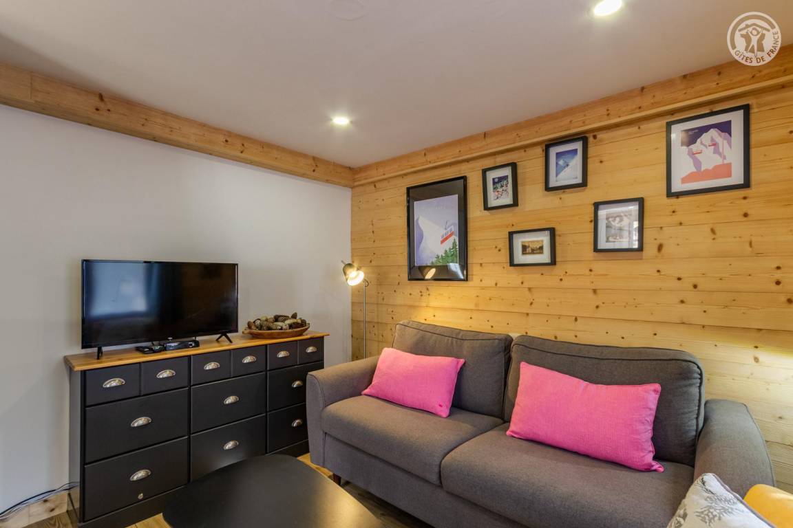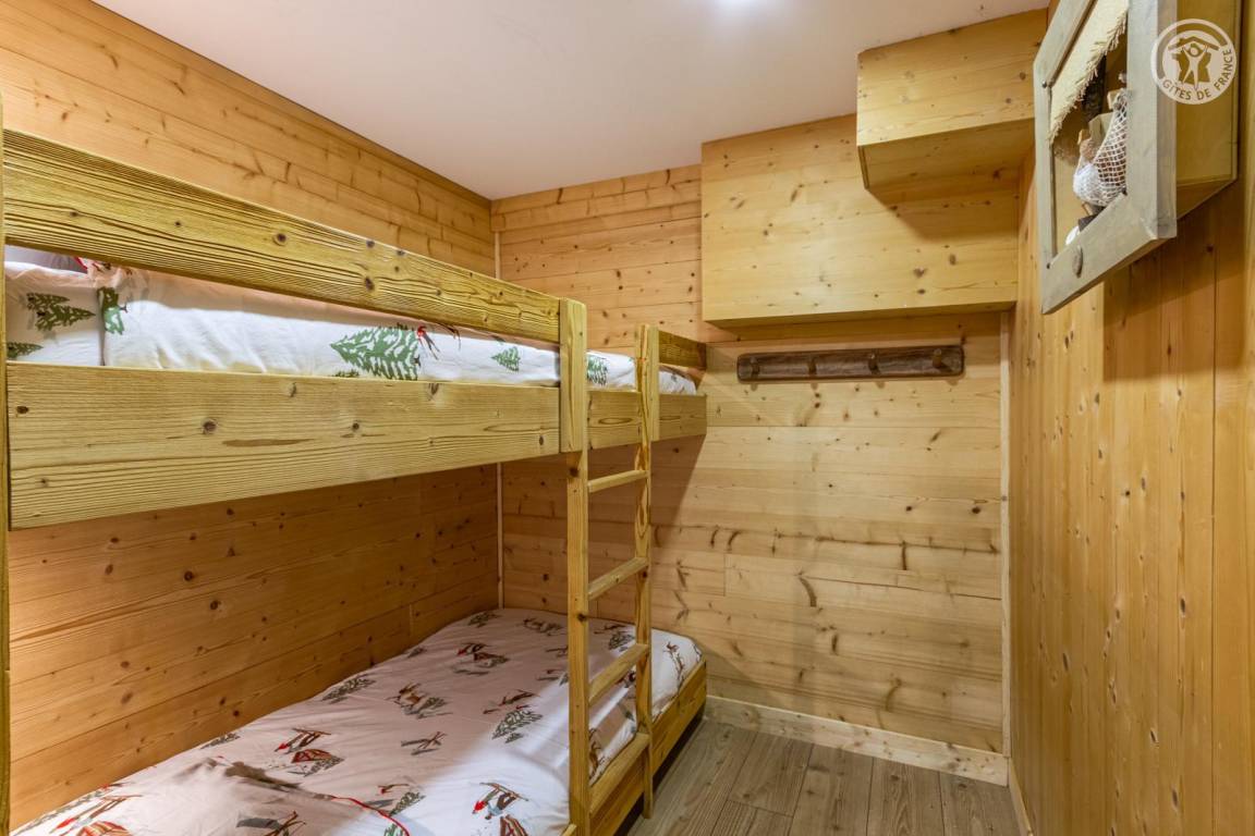Ferienhaus im Erdgeschoss des Hauses, mit unabhängigem Zugang, bestehend aus einem Eingang (Skiraum), einem Wohn-/Küchenbereich (Chromcast-TV, 1 Doppelschlafsofa), 1 Schlafzimmer (1 Doppelbett 140 x 190 cm) mit eigenem Bad (Dusche und WC), ein kleines Kabinenschlafzimmer ohne Öffnung nach außen (2 Einzel-Etagenbetten 90x190 cm), separates WC. Terrasse. Telefon- und Internetnetz abhängig vom Betreiber begrenzt. Möglichkeit des Zugangs zur Sauna und zum Spa in der Residenz gegenüber dem Ferienhaus (gegen Gebühr und nach Reservierung).