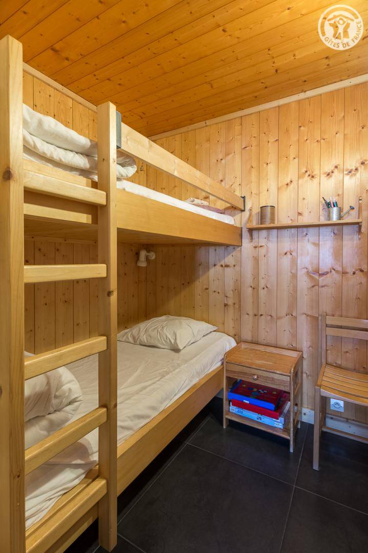 Haus mit 3 Gîtes. Unabhängige Gîte im Erdgeschoss: Wohnzimmer-Küche-Lounge, 3 Schlafzimmer, darunter ein "Kabinen"-Schlafzimmer ohne Öffnung nach außen (1 Doppelbett 140 x 190 cm und Kabine mit 2 Etagenbetten / 1 Doppelbett 140 x 190 cm + 2 Einzel-Etagenbetten ) und eines mit eigenem Bad (Dusche/WC). Badezimmer (Badewanne). Doppelte Terrasse (darunter eine überdachte). Privater Garten. Telefon- und Internetnetz laut Betreiber eingeschränkt.