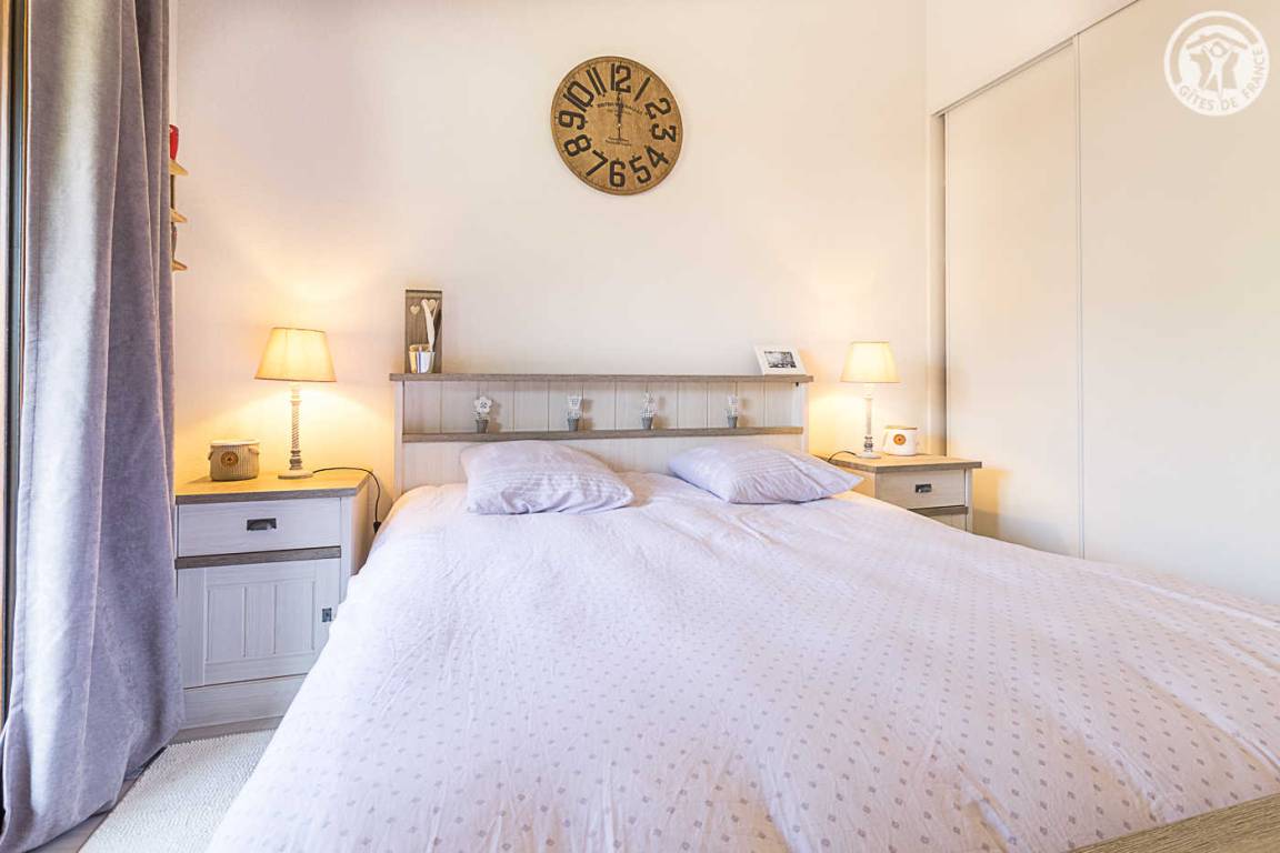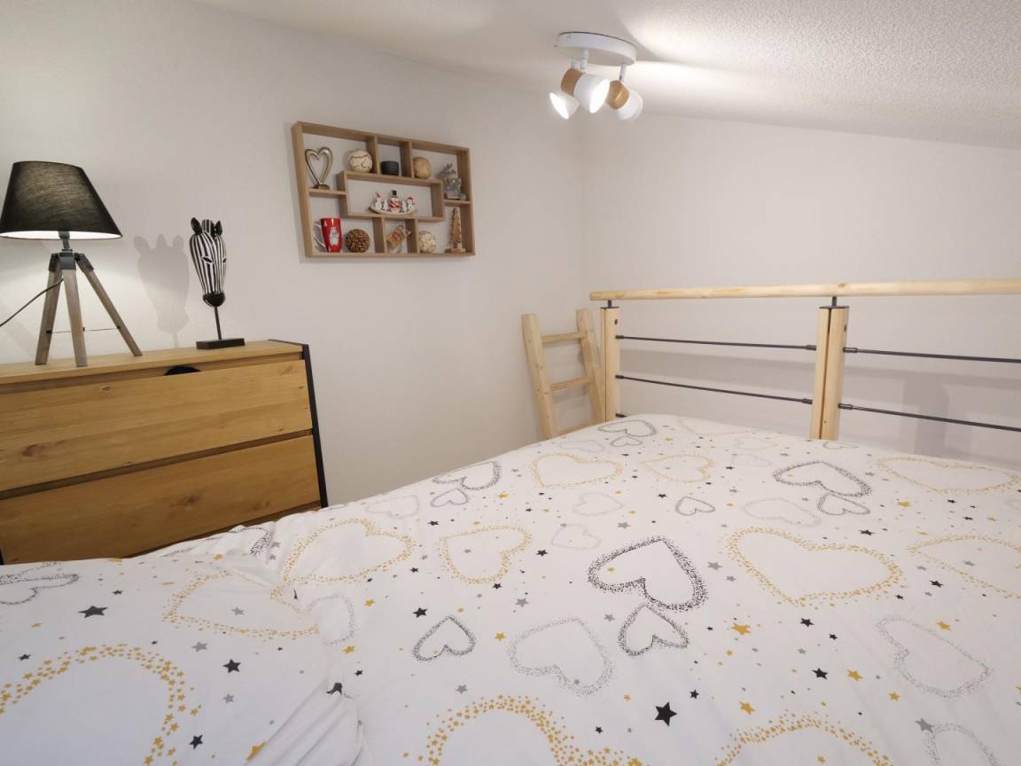 2019 Residenz mit 20 weiteren Touristenunterkünften. Im 2. Stock (Zugang mit dem Aufzug): Wohnzimmer-Wohnzimmer-Küchenbereich (mit Schlafsofa), Schlafzimmer (1 Doppelbett 160x200), Schlafzimmer mit Mezzanine (2 Etagenbetten für 1 Person und 1 Doppelbett 160x200 - Zugang durch eine steile Leiter), Duschraum (Dusche mit WC) und separates WC. Private Garage 1 Platz. 2 Balkonterrassen (10 m² und 5 m²). Optional Endreinigung, Waschtrockner. Wohnung zugänglich für Personen mit eingeschränkter Mobilität. Telefon- und Internetnetz laut Betreiber eingeschränkt.