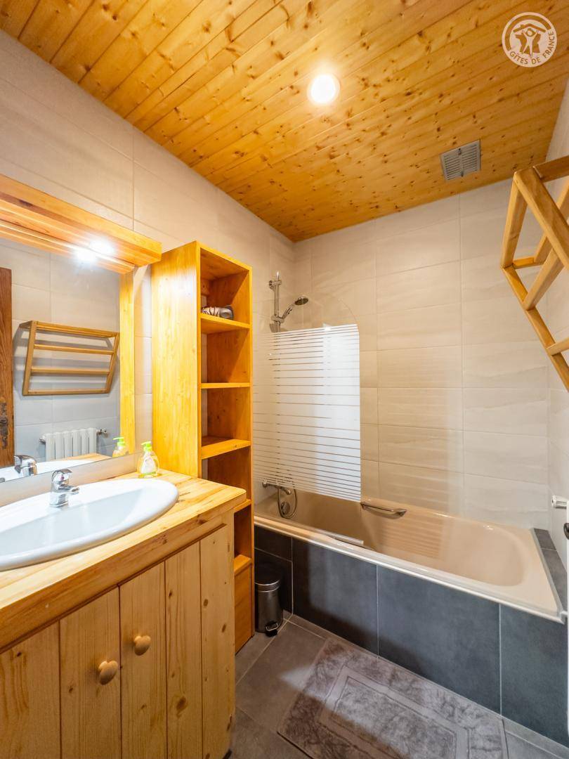 Individuelles Haus. Erdgeschoss + 1. Stock: Wohnzimmer, Küche, kostenloses WLAN, Mezzanine (2 Einzelbetten), 3 Schlafzimmer. (2 Doppelbetten / 2 Einzelbetten), Esszimmer. Badezimmer (Badewanne), s. Wasser (Dusche), Wäschetrockner gemeinsam. Terrasse. Gemeinsame Garage. Bettwäsche wird gestellt. Gesamtfläche 114m² Dachgeschoss inklusive. Ski La Giettaz/Domain Les Portes du Mont-Blanc auf 600m. Telefon- und Internetnetz laut Betreiber eingeschränkt.