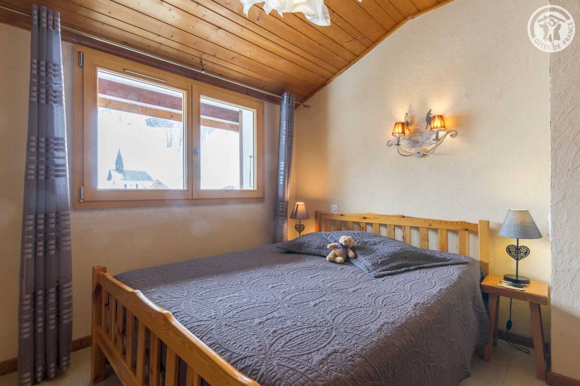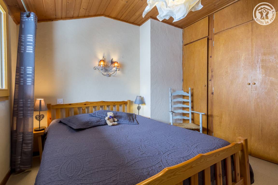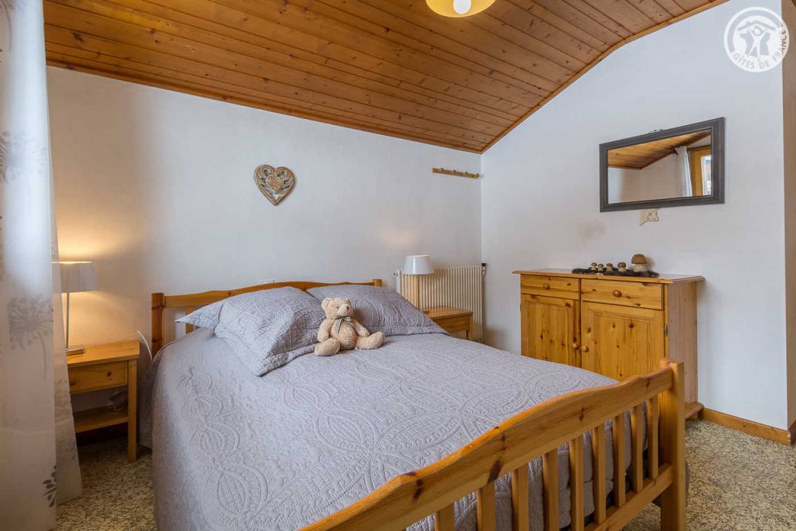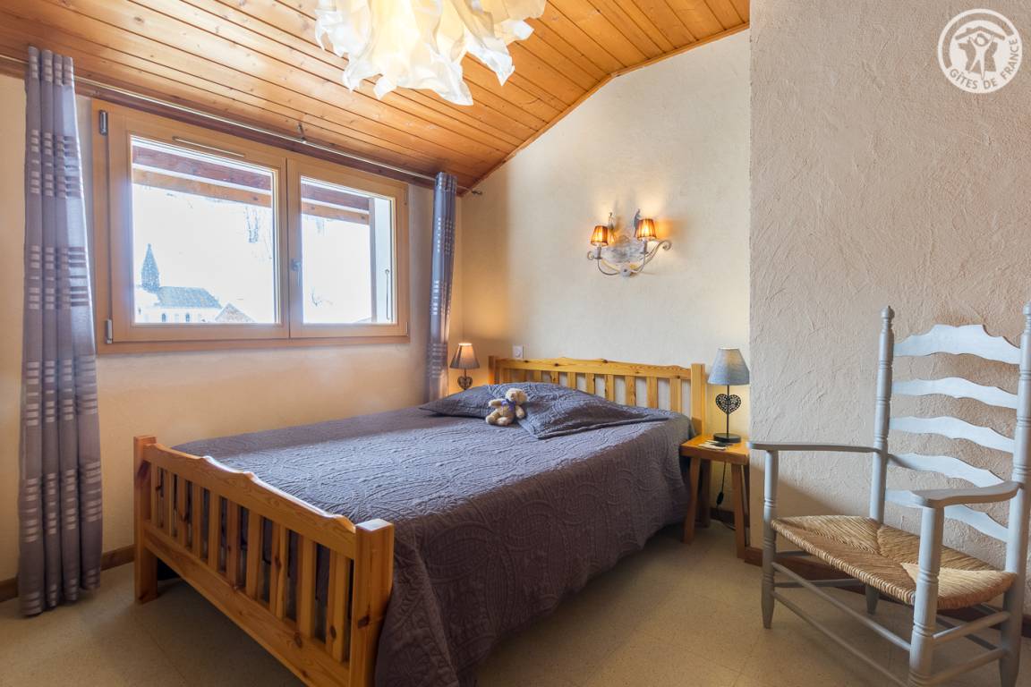 Chalet bestehend aus 3 Gites. Ferienhaus im 1. Stock (Zugang über eine unabhängige Innentreppe). Wohnzimmer-Küche mit Sitzecke. 3 Schlafzimmer (1 Doppelbett 140 x 190 cm/1 Doppelbett 140 x 190 cm/1 Doppelbett 140 x 190 cm) und eine Schlafnische mit 4 Einzelbetten (4 Einzelbetten 90 x 190 cm). 1 Badezimmer (Badewanne) und 1 Duschraum (Dusche und WC), separates WC. Südbalkon. Privater Skiraum. Telefon- und Internetnetz laut Betreiber eingeschränkt.
