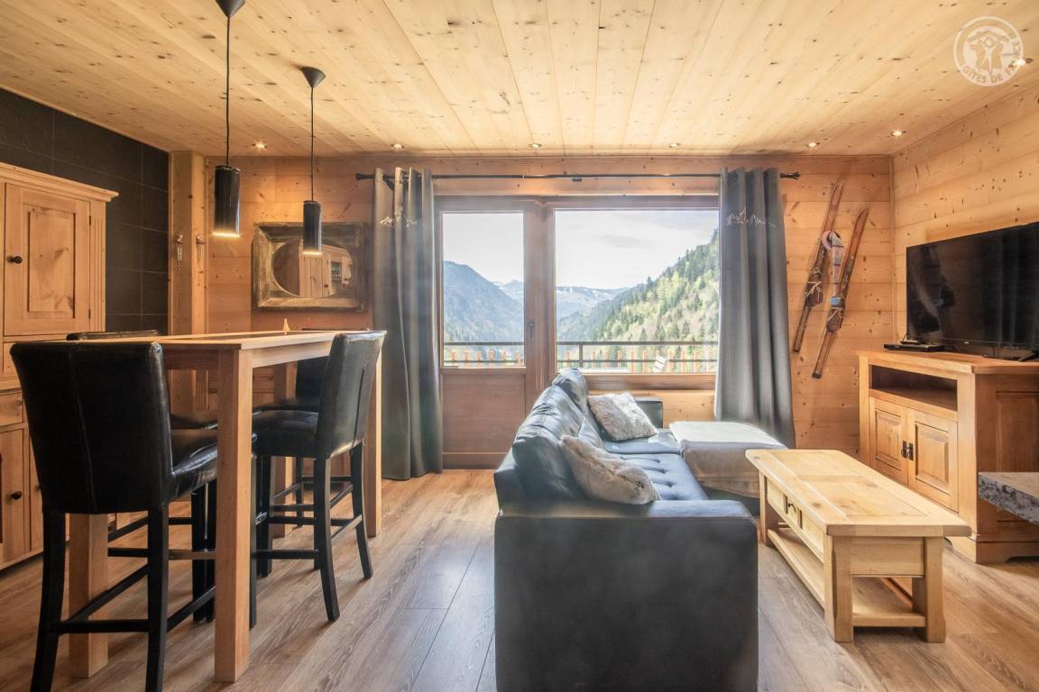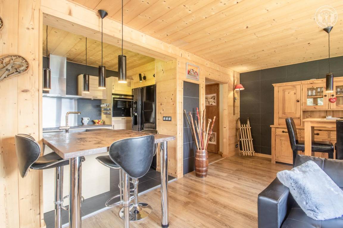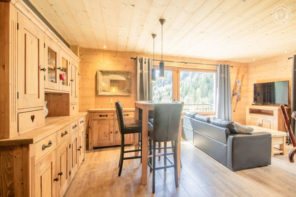 Der Wohnbereich zeichnet sich durch seine Helligkeit aus, seine großen Fenster öffnen sich auf zwei Balkone, die nach Süden und Westen ausgerichtet sind und mit einem Tisch und Stühlen ausgestattet sind. Eine bemerkenswerte Renovierung für dieses geräumige Apartment schafft dank der Harmonie zwischen Holz und modernen Möbeln eine warme Atmosphäre. Um Ihren Aufenthalt zu erleichtern, steht im Winter ein kostenloser Shuttle zu den Skipisten im 4 km entfernten Le Plan zur Verfügung.