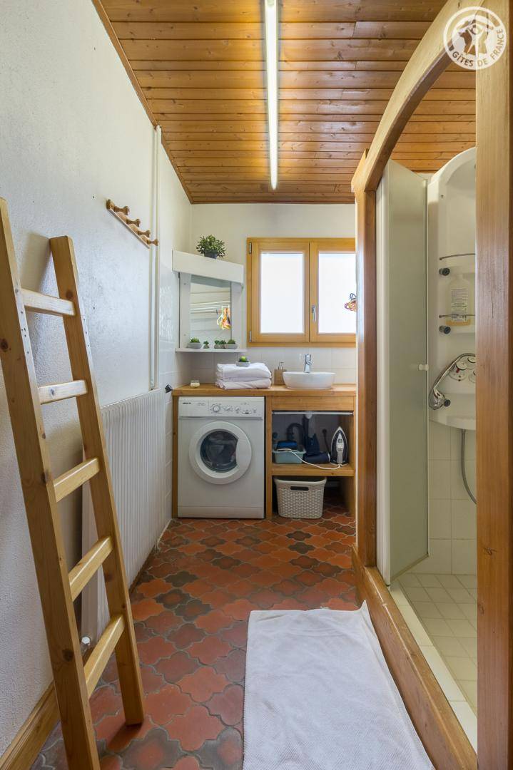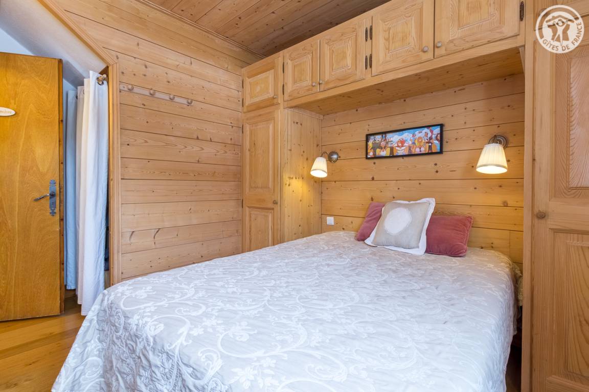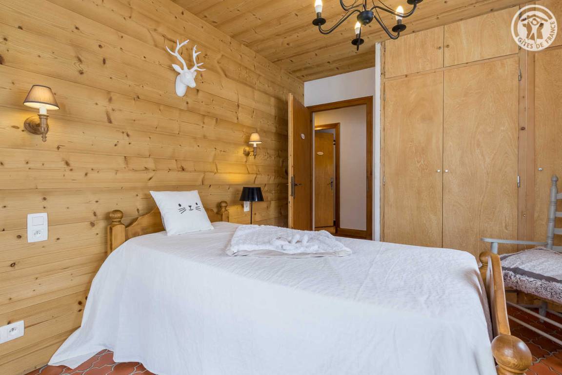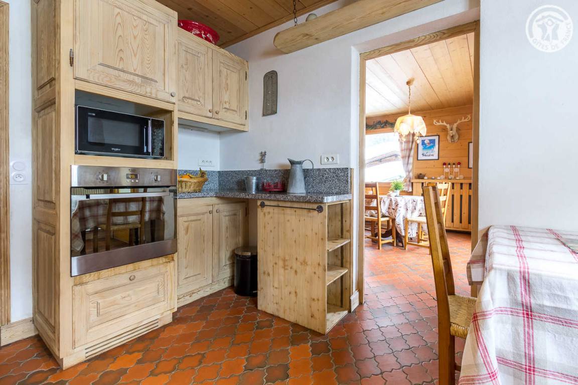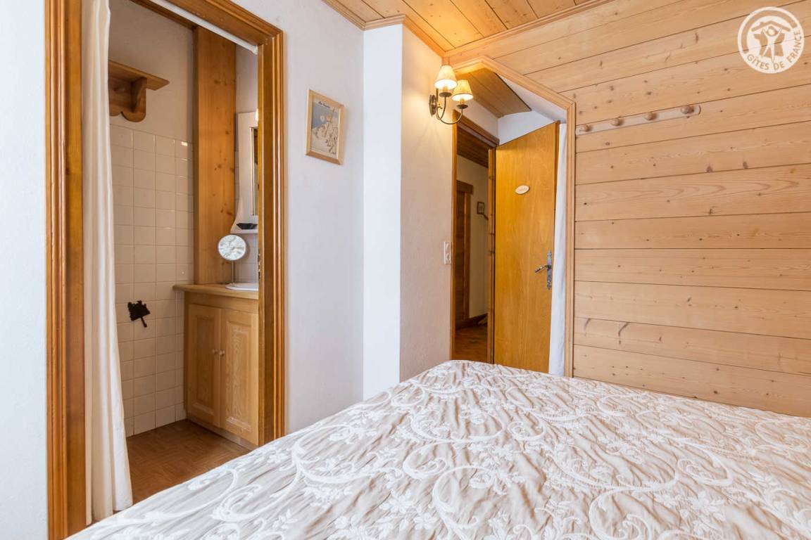 Chalet bestehend aus 3 Gites. Ferienhaus im Erdgeschoss (unabhängiger Zugang). Küche, Salon-Aufenthalt. 2 Schlafzimmer (1 Doppelbett 140x190 cm mit WC und Waschbecken / 1 ausziehbares Einzelbett und 1 Doppelbett 140x190 cm). Badezimmer (Dusche), separates WC.